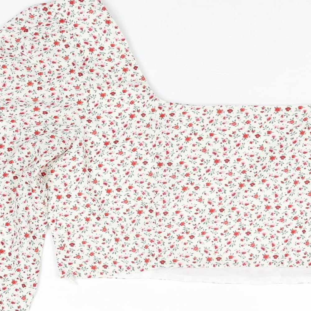 Glamorous Womens Ivory Floral Polyester Cropped Blouse Size 10 Square Neck