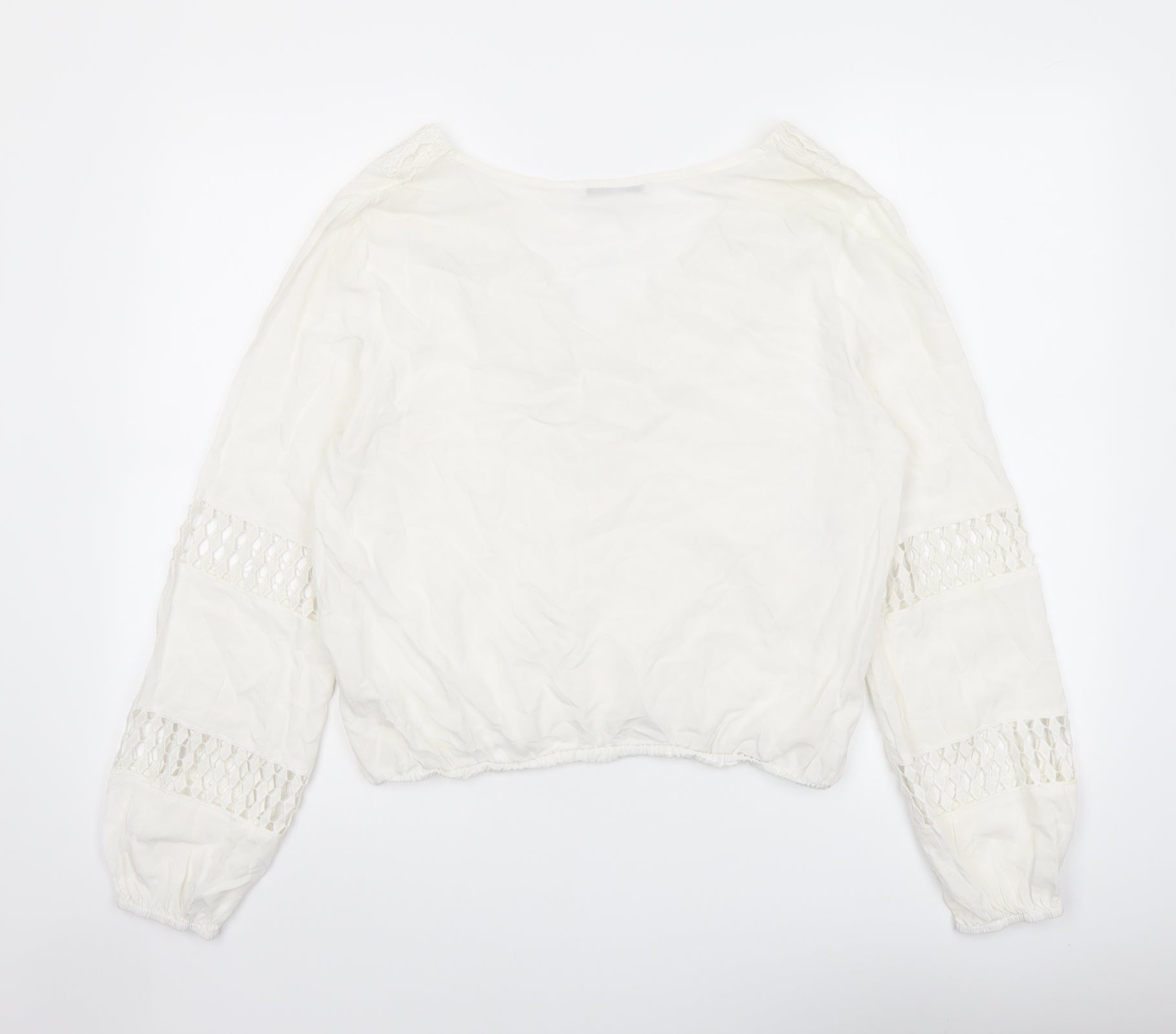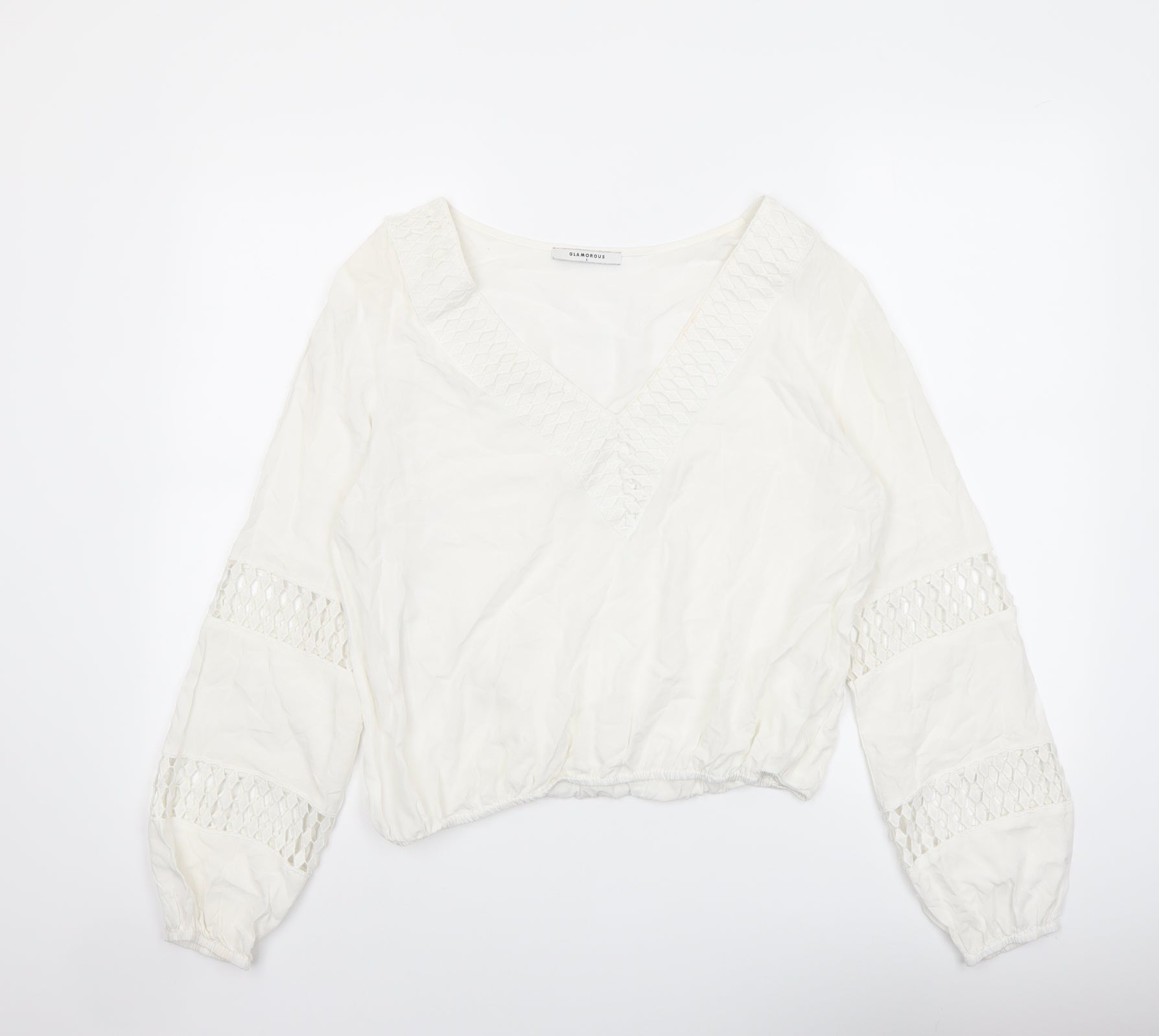Glamorous Womens Ivory Viscose Basic Blouse Size S V-Neck - Crochet Detail