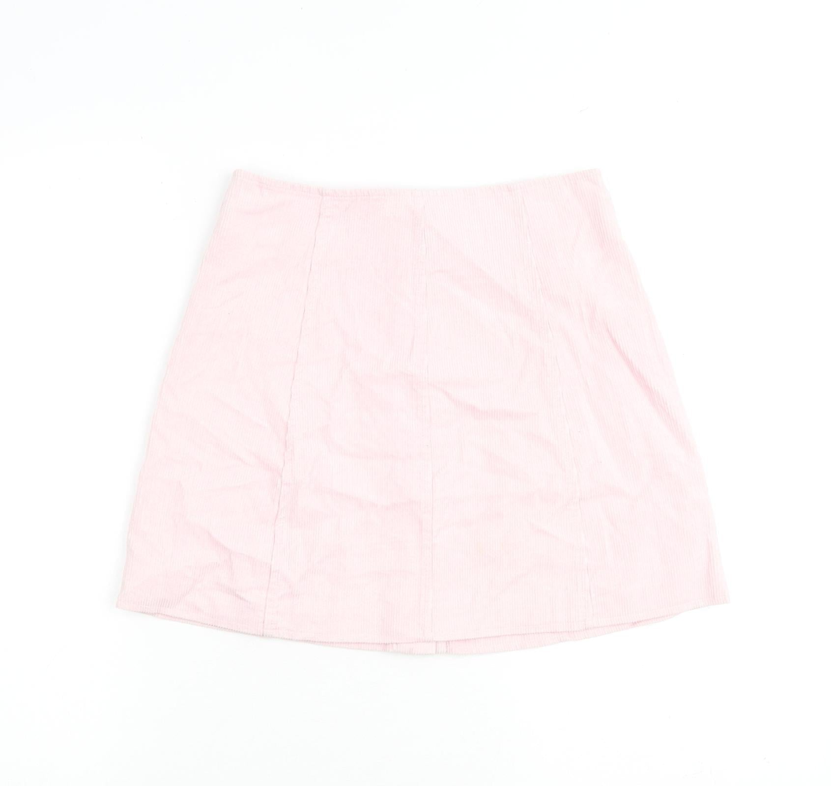 Glamorous Womens Pink Cotton A-Line Skirt Size 8 Button