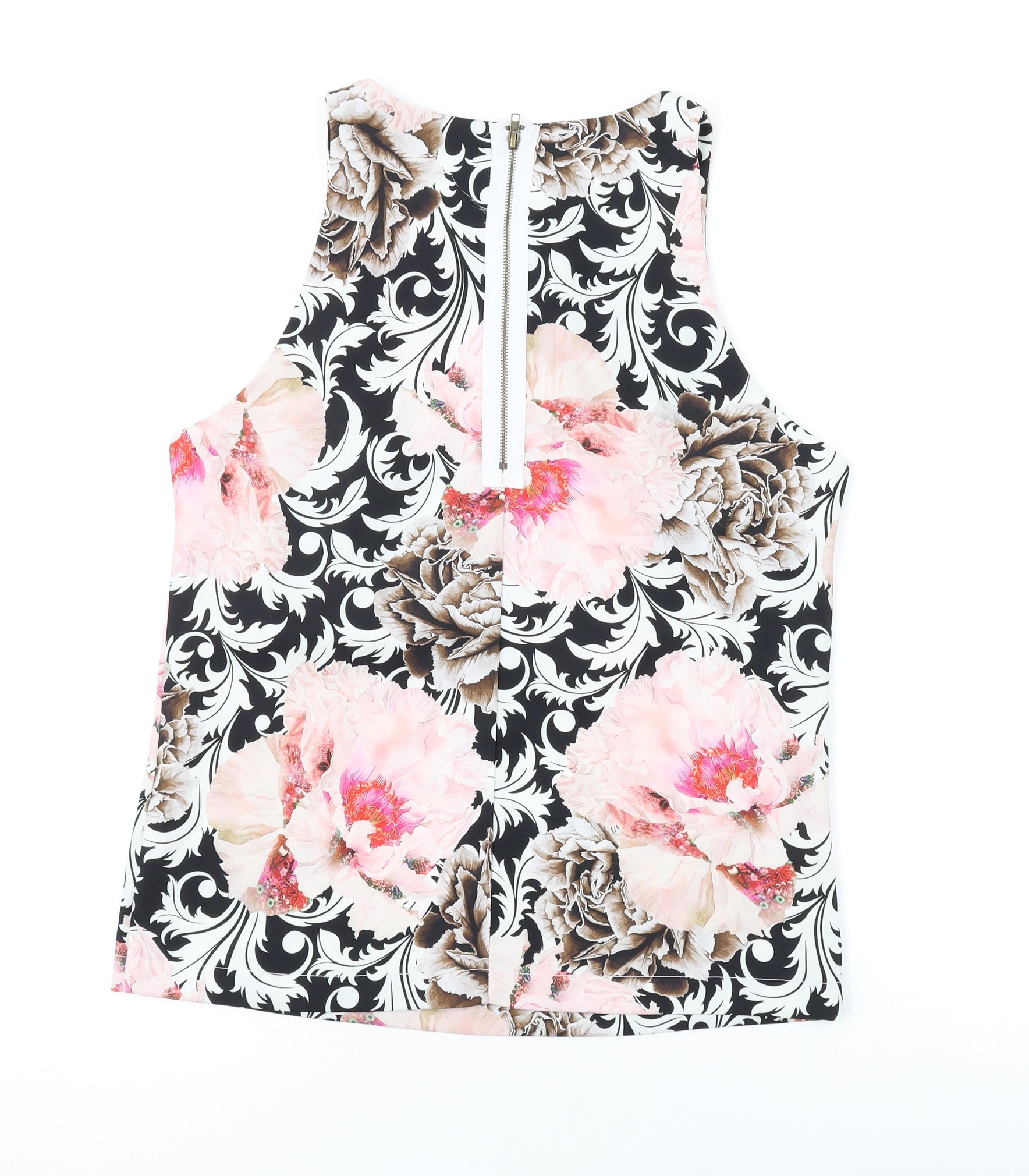 Glamorous Womens Pink Floral Polyester Basic Tank Size 8 Scoop Neck