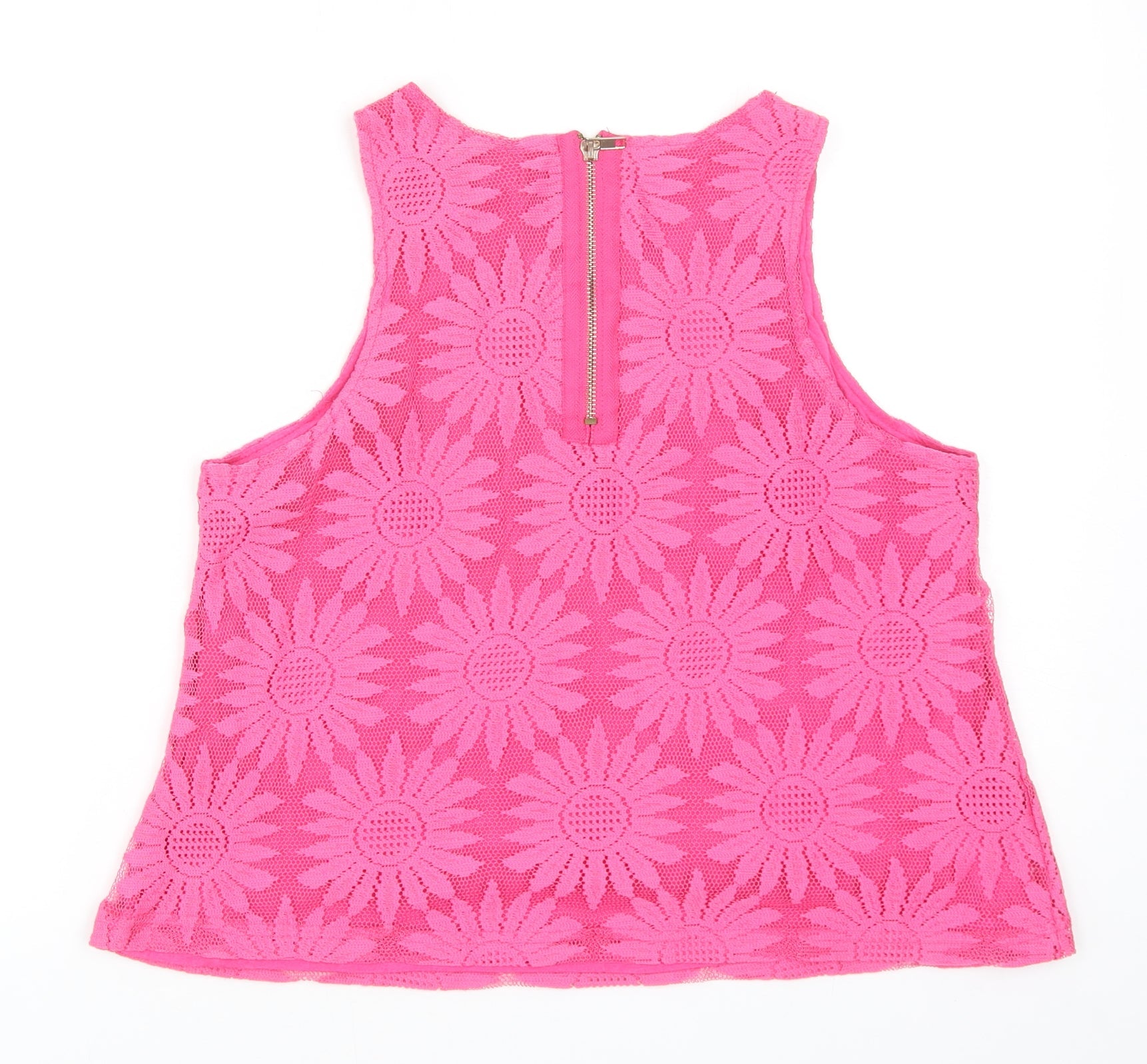 Glamorous Womens Pink Geometric Polyester Basic Tank Size S Round Neck