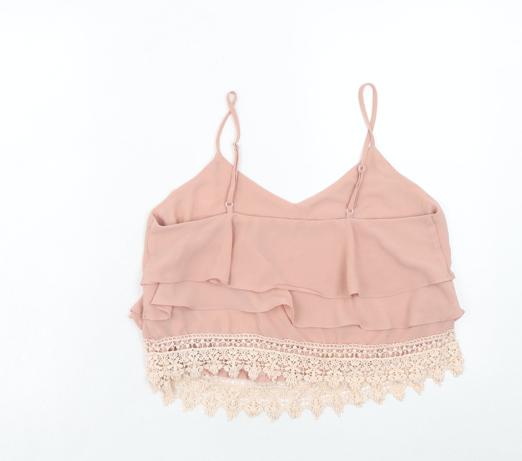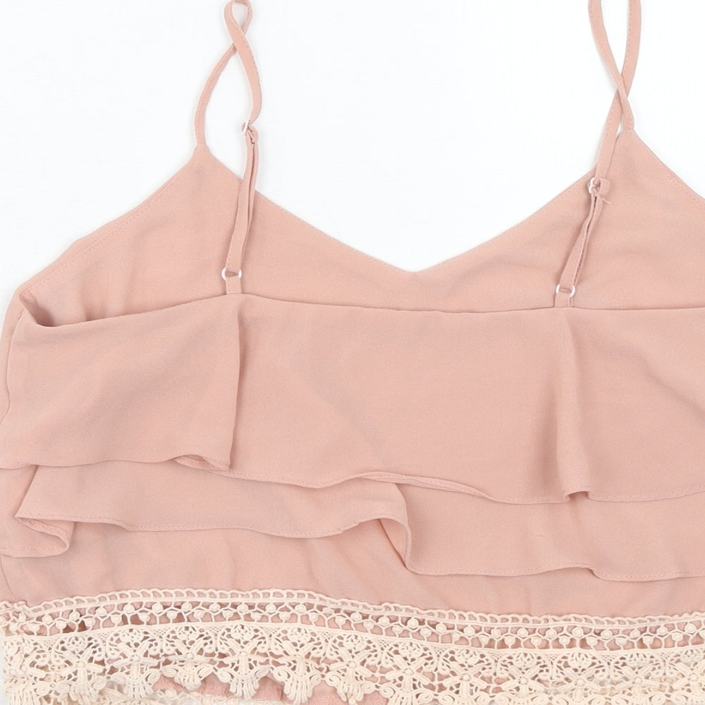 Glamorous Womens Pink Polyester Cropped Tank Size M V-Neck