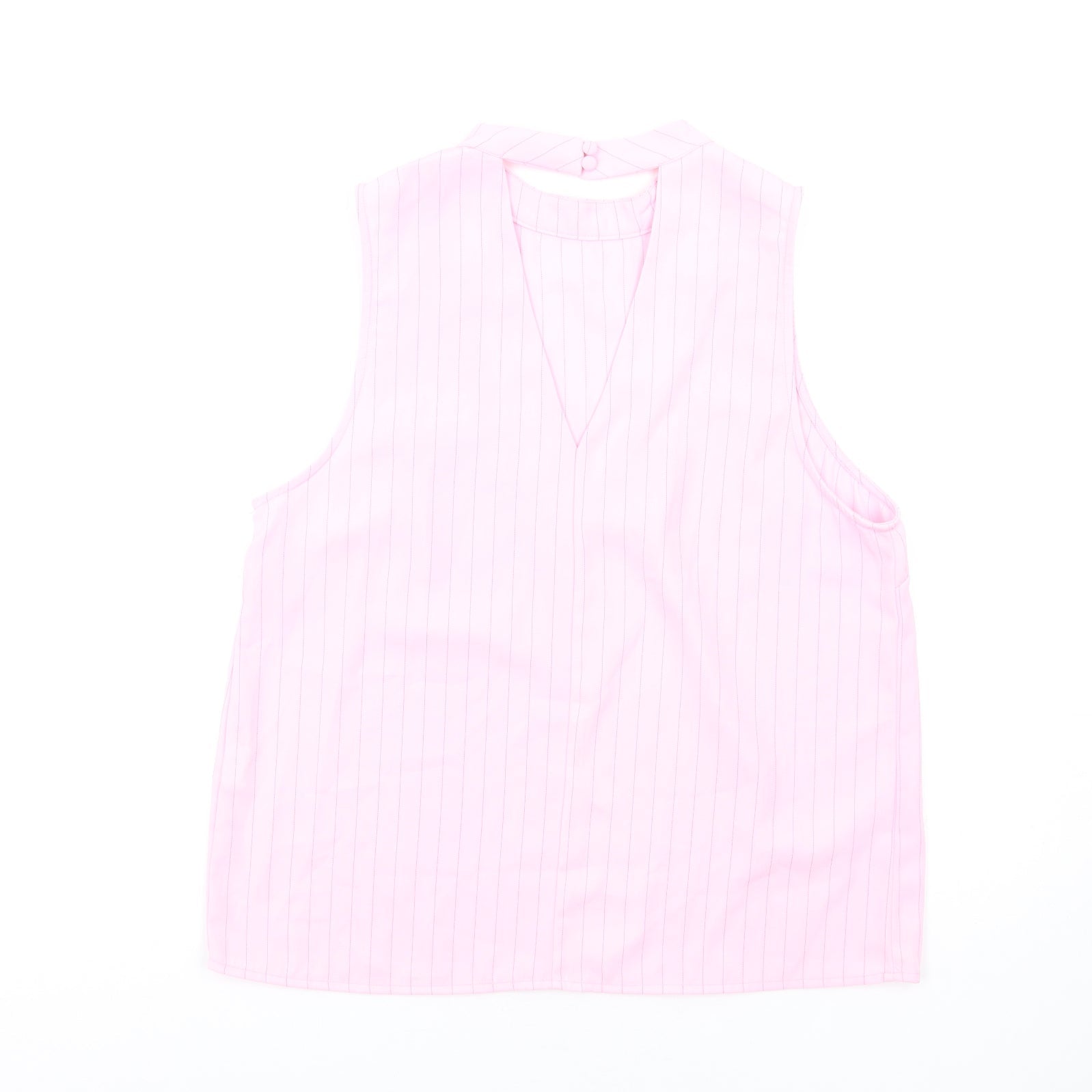 Glamorous Womens Pink Striped Polyester Basic Blouse Size 14 Round Neck