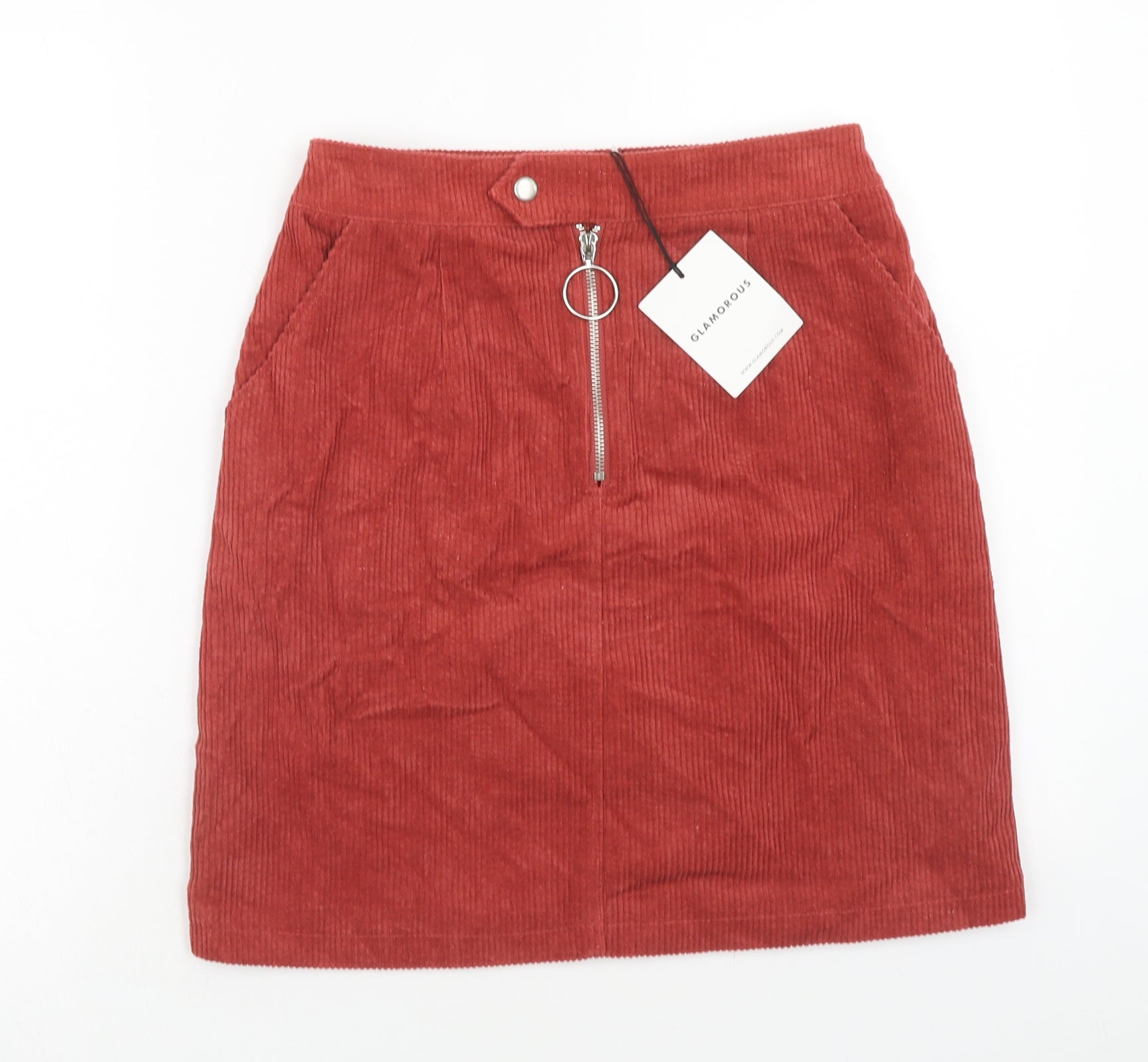Glamorous Womens Red Cotton Straight & Pencil Skirt Size 8 Zip