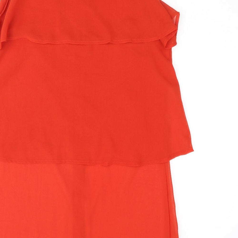 Glamorous Womens Red Polyester Tunic Blouse Size 12 Collared - Layered Frill Semi Sheer