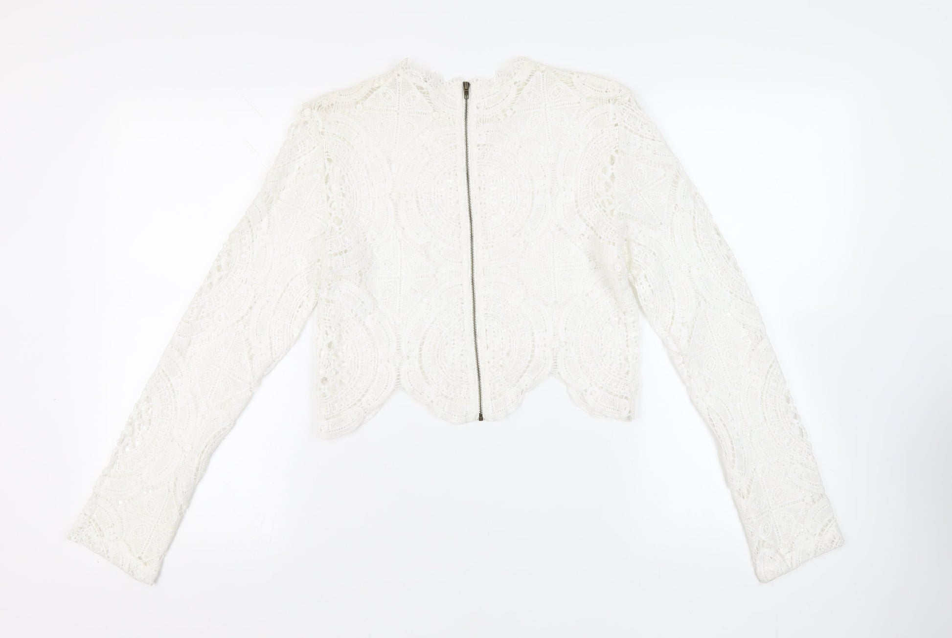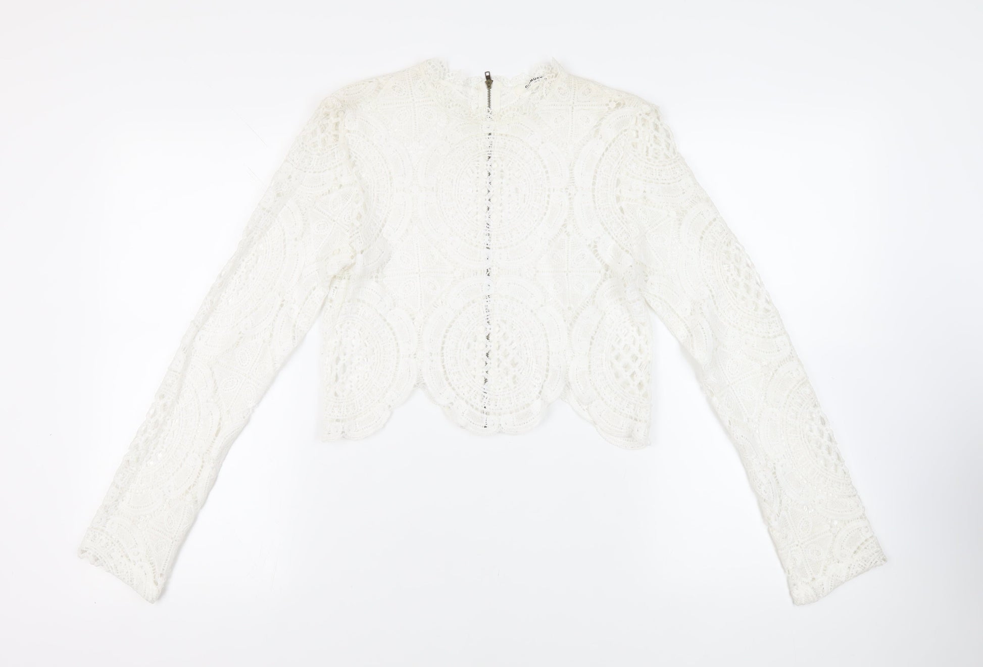 Glamorous Womens White Cotton Cropped Blouse Size 10 Mock Neck