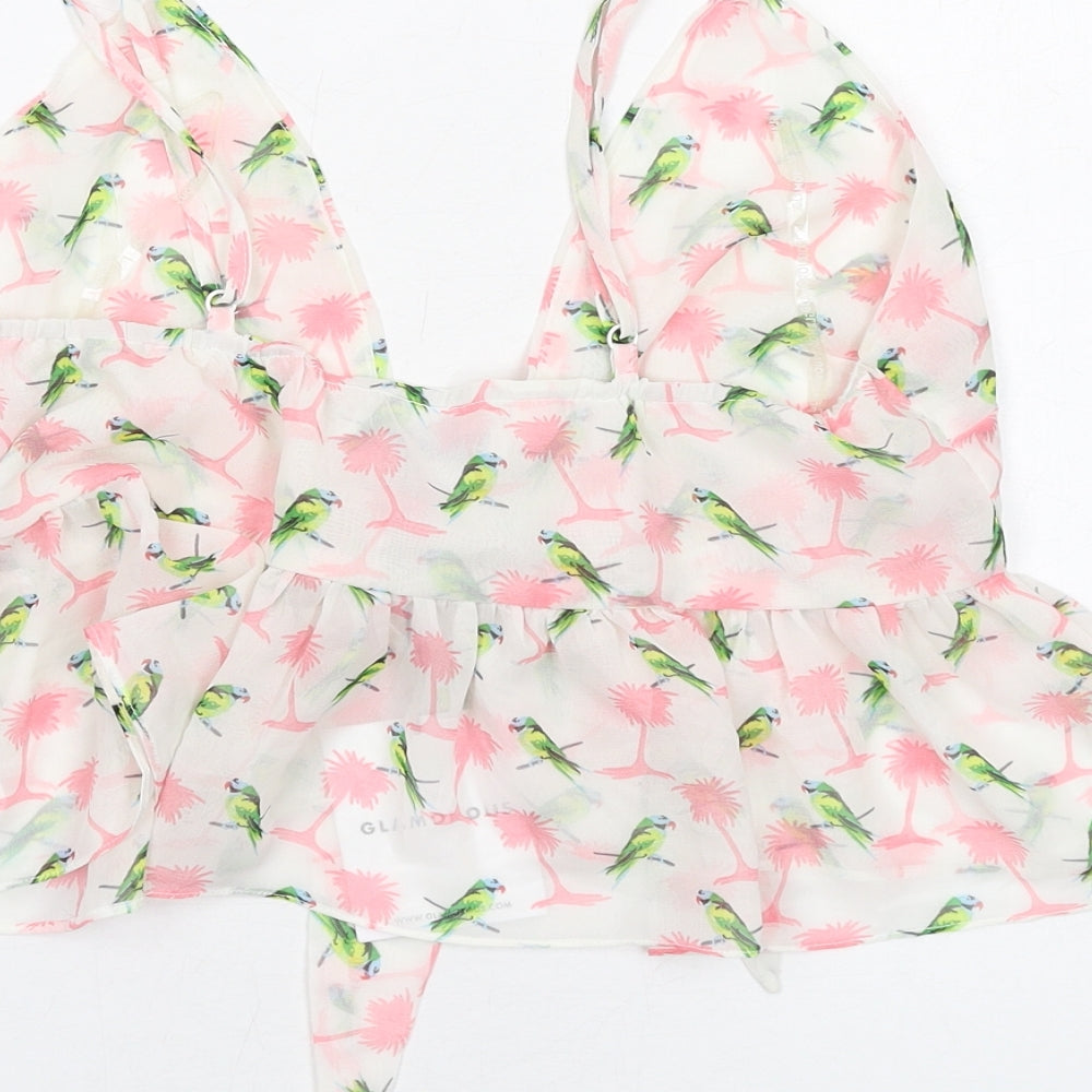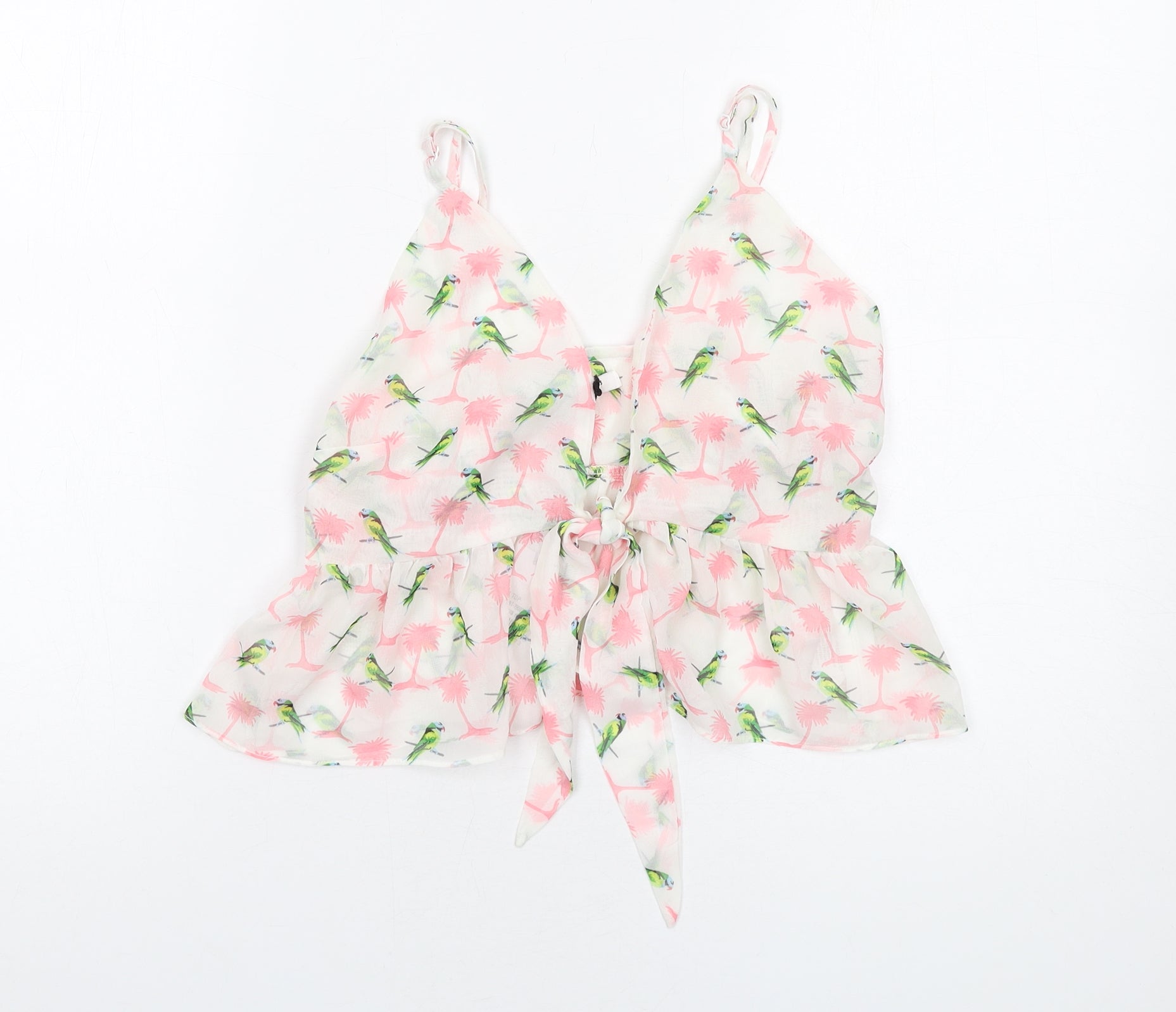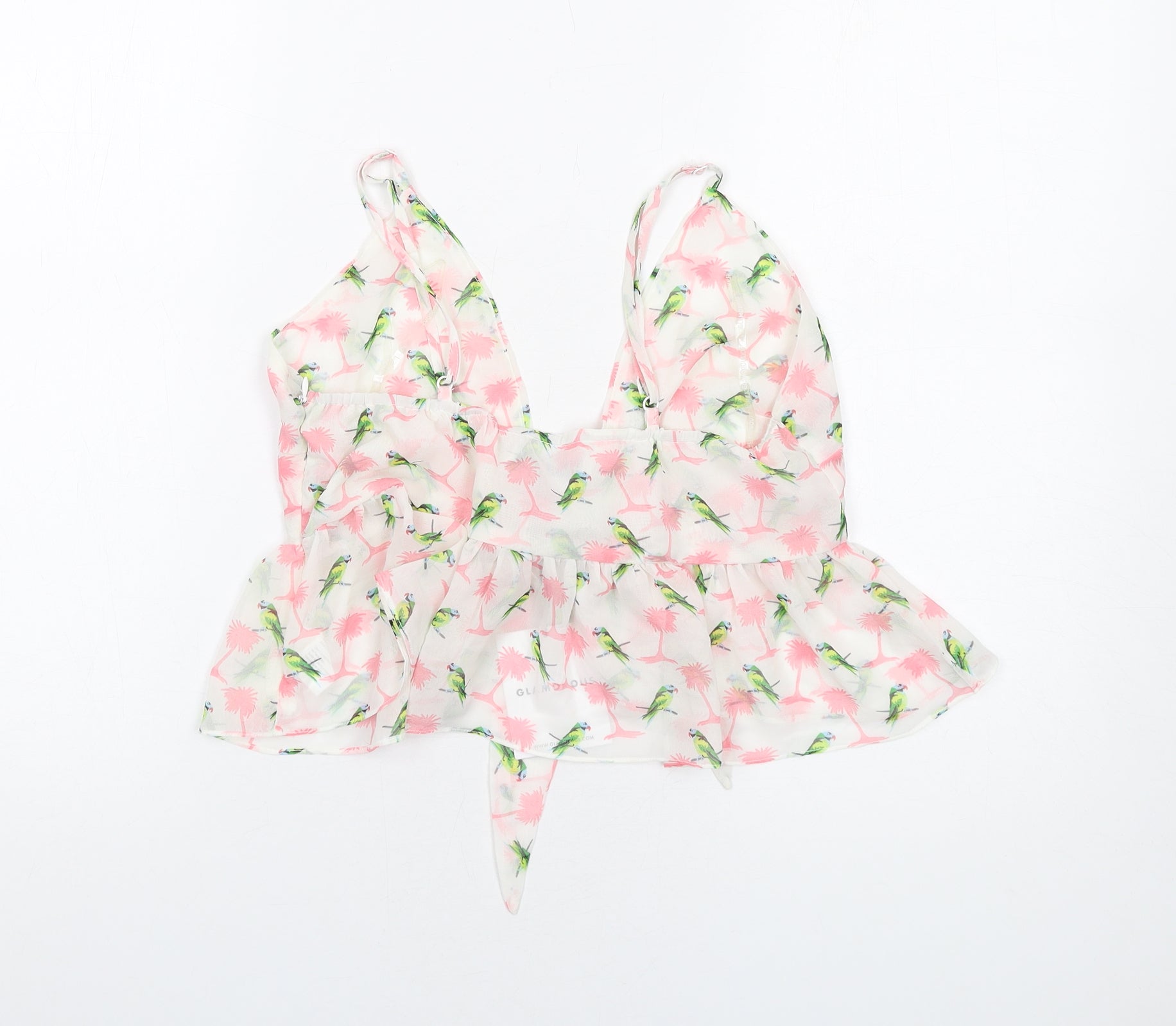 Glamorous Womens White Geometric Polyester Camisole Tank Size S V-Neck