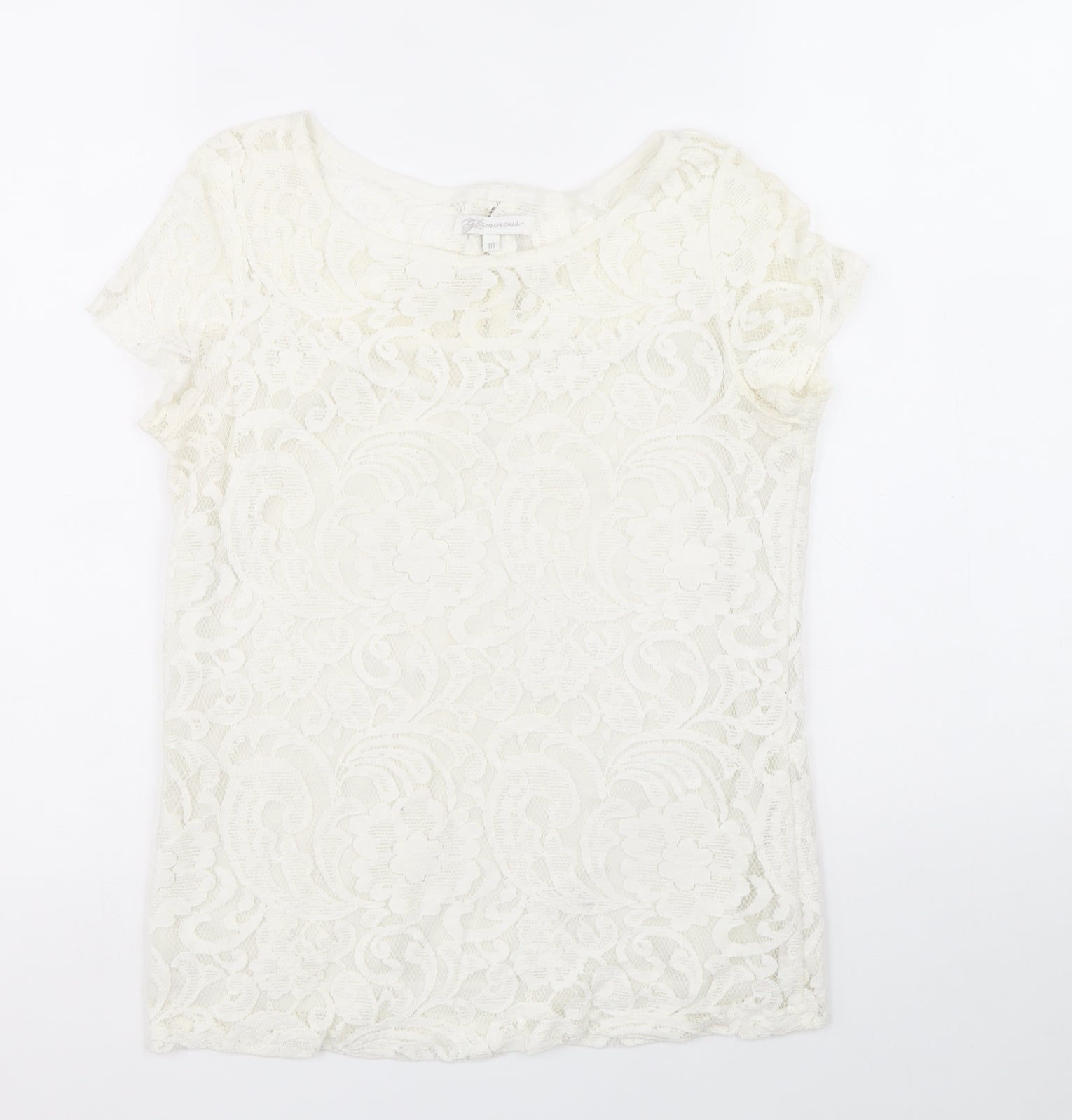 Glamorous Womens White Polyester Basic Blouse Size 10 Scoop Neck