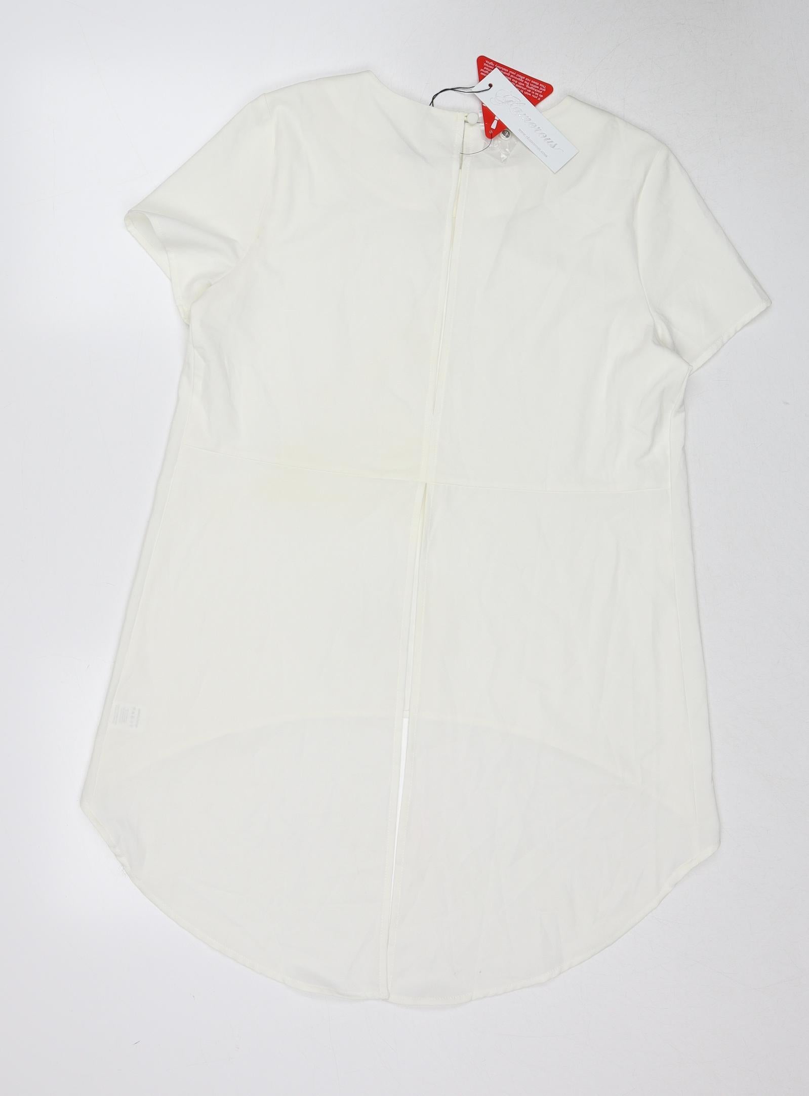Glamorous Womens White Polyester Basic Blouse Size 12 Boat Neck - Neckline Detail