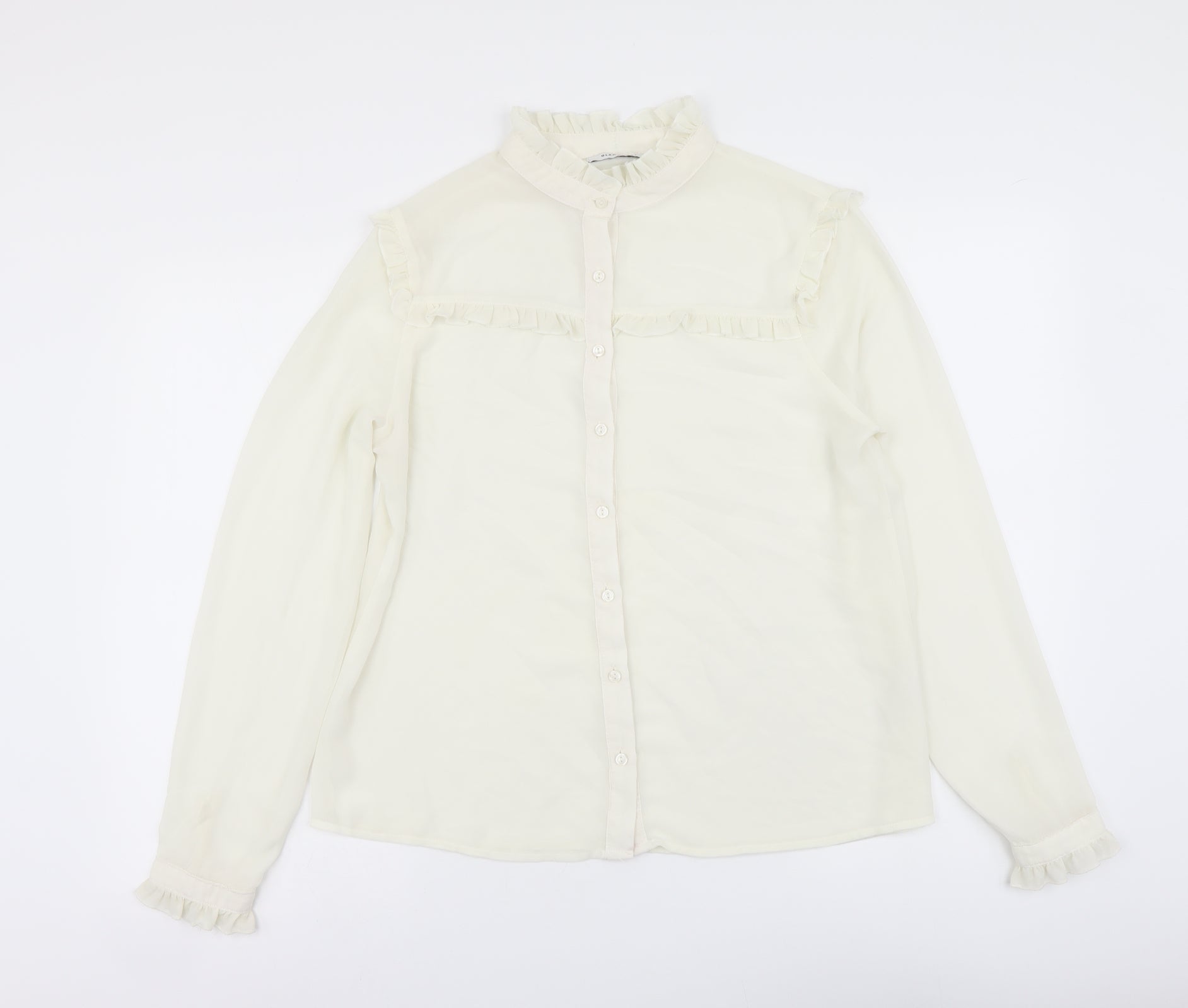 Glamorous Womens White Polyester Basic Button-Up Size 14 Mock Neck