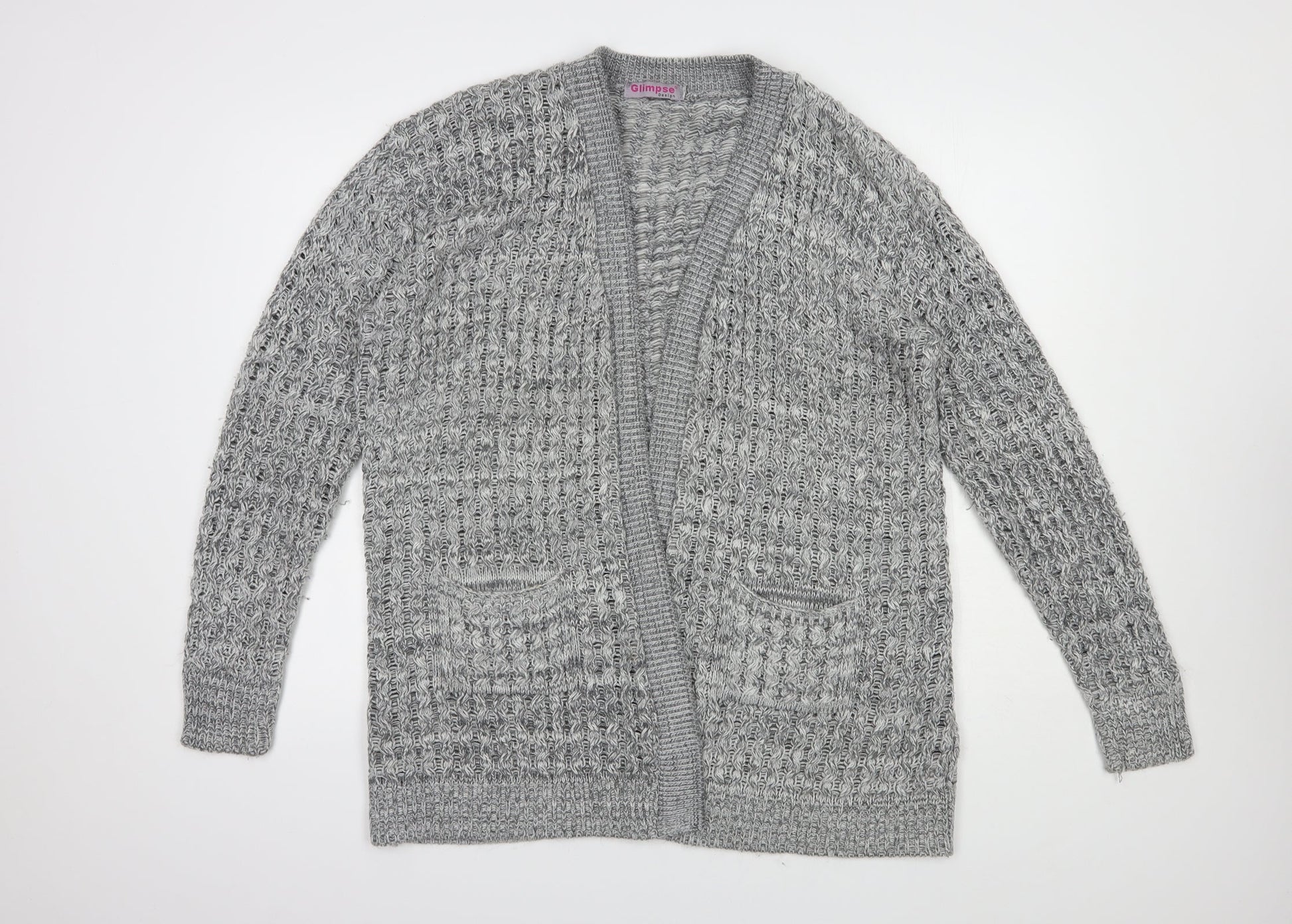 Glimpse Womens Grey V-Neck Acrylic Cardigan Jumper Size L