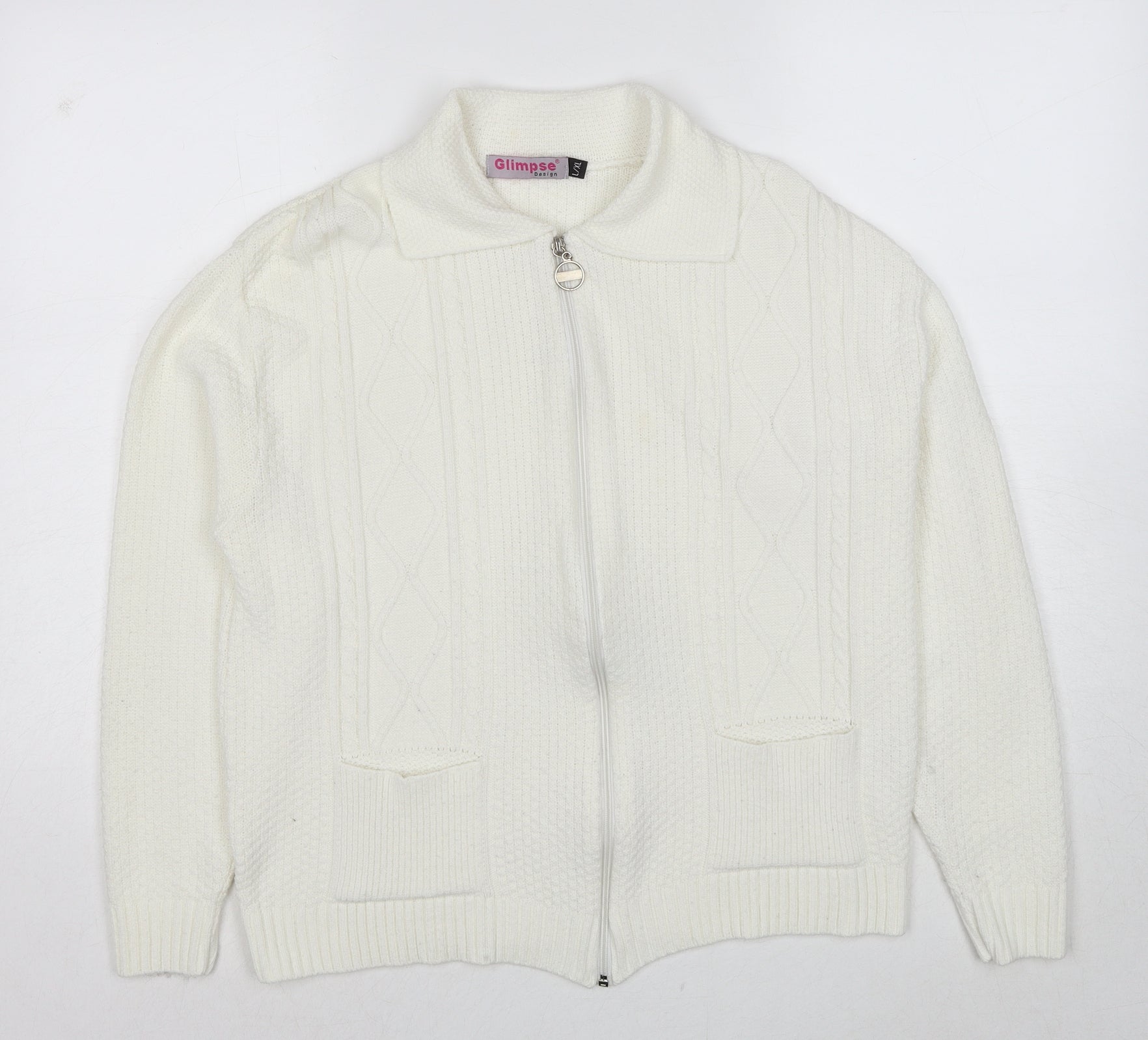 Glimpse Womens White Collared Polyester Full Zip Jumper Size L