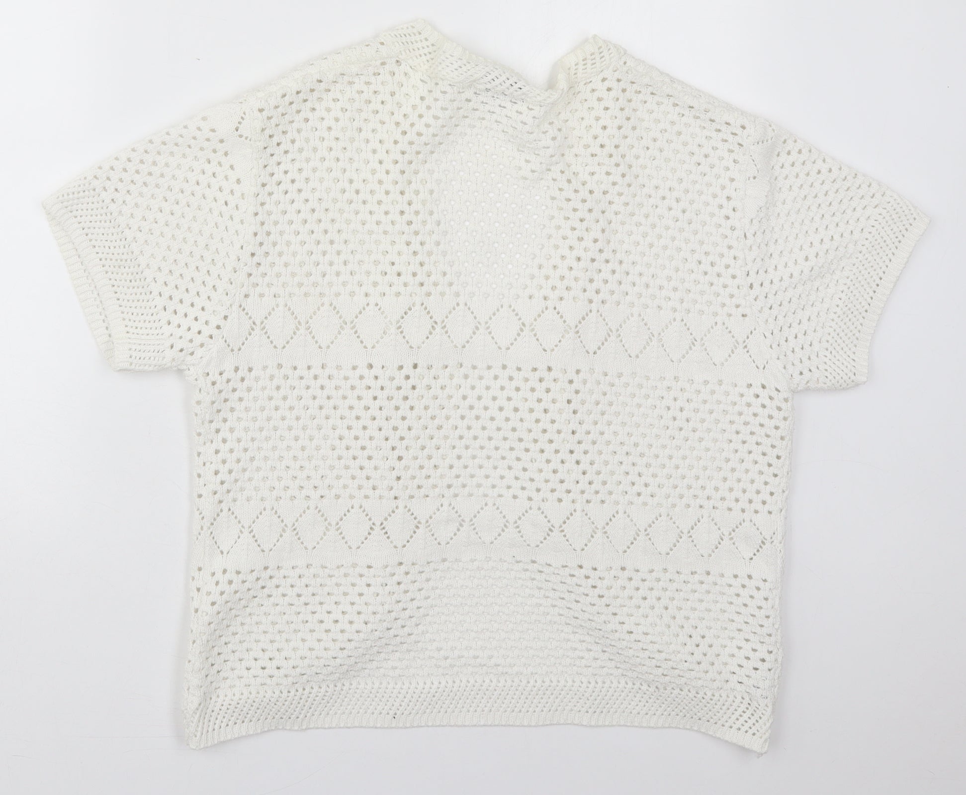Glimpse Womens White V-Neck Acrylic Cardigan Jumper Size L