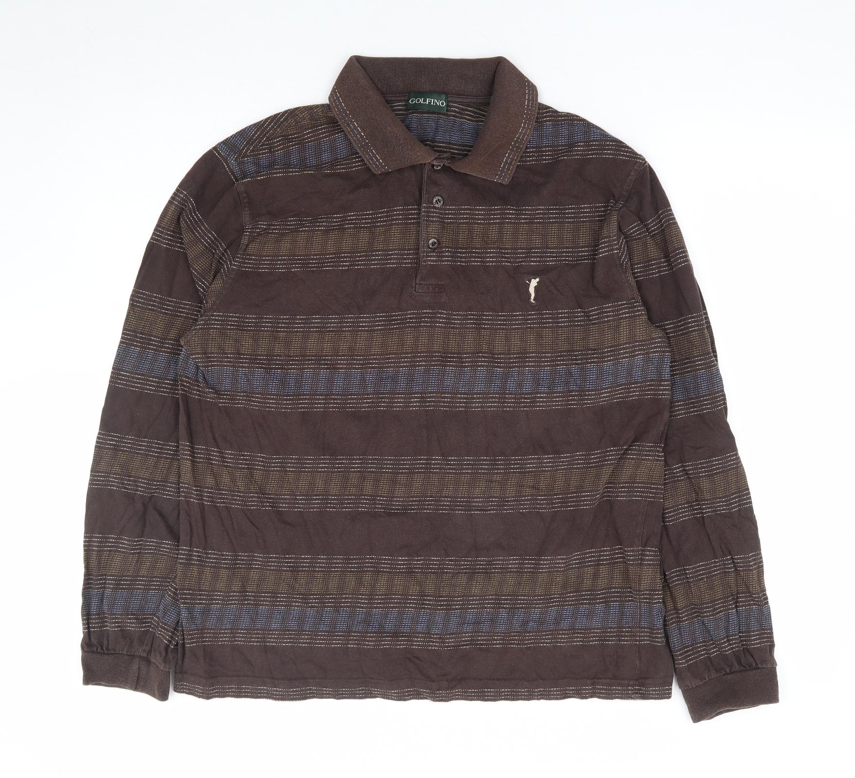 GOLFINO Mens Brown Geometric Cotton Polo Size 40 Collared Button