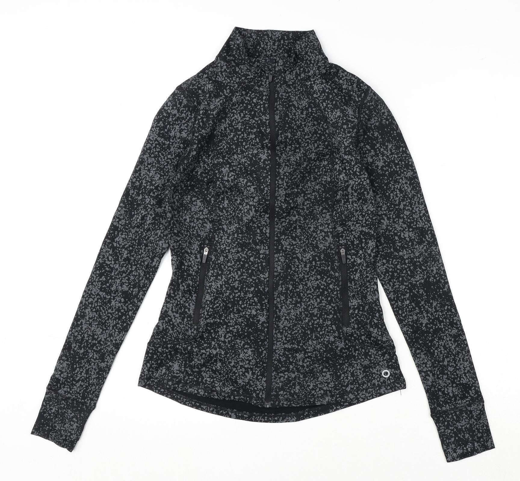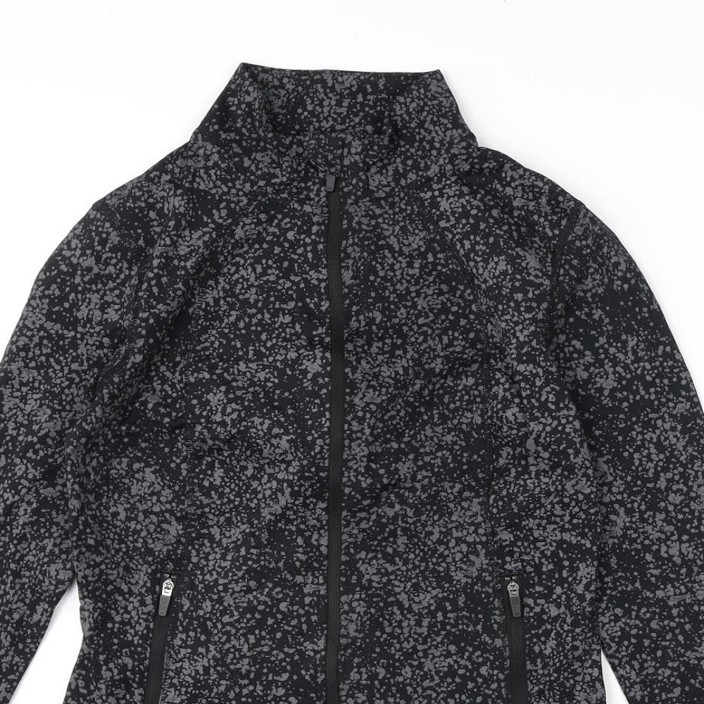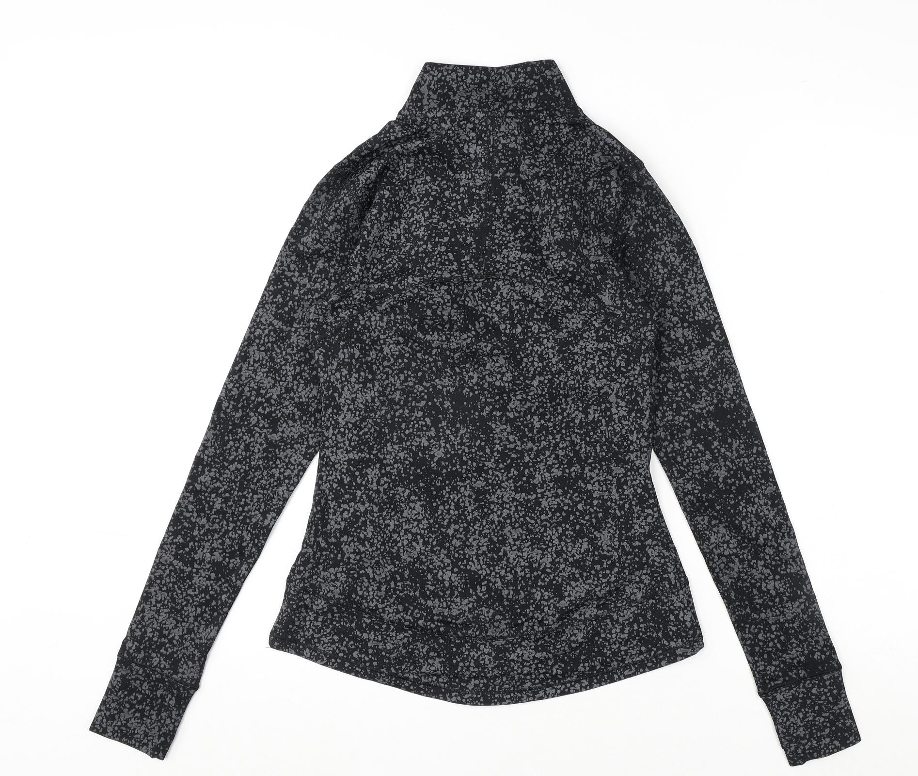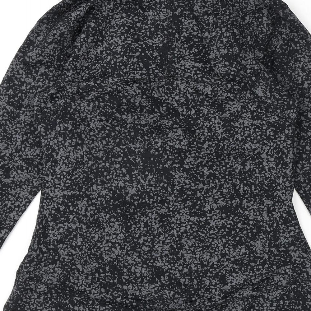GOODMOVE Womens Grey Geometric Polyester Basic T-Shirt Size 6 V-Neck Zip - Running Top