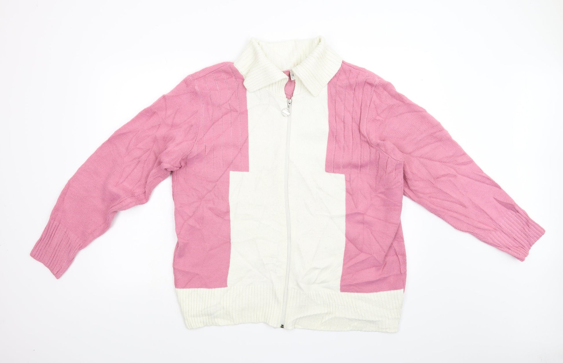 Gorgeous Womens Pink Knit Full Zip Jumper Size L