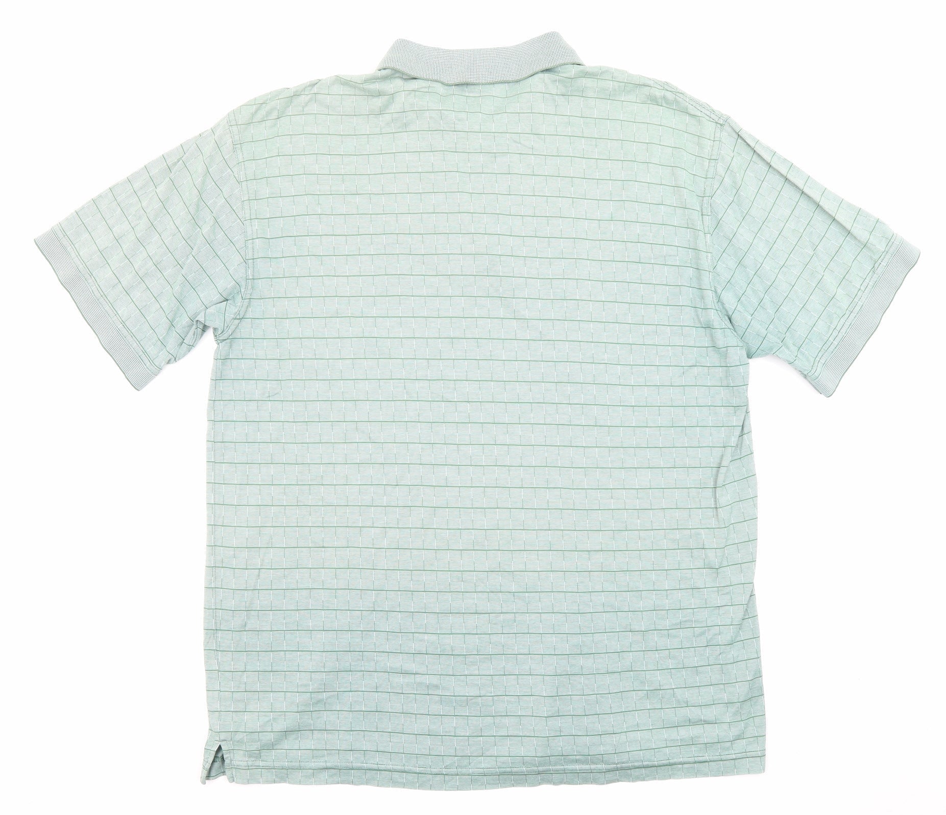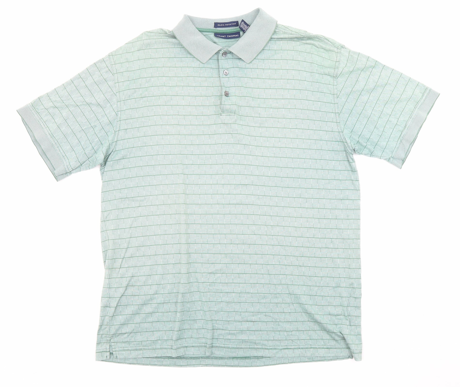 Grant Thomas Mens Green Striped Cotton Polo Size M Collared Button