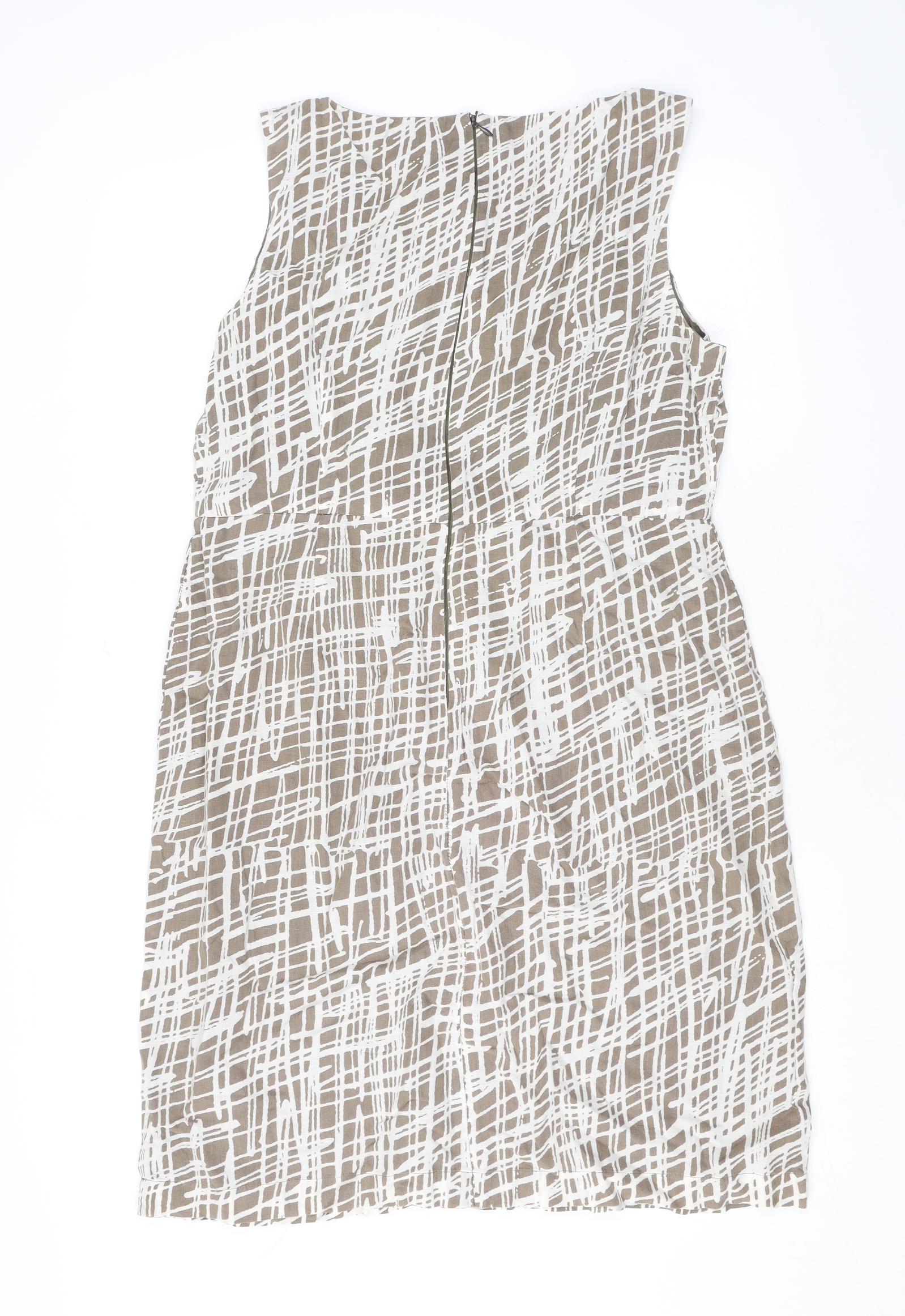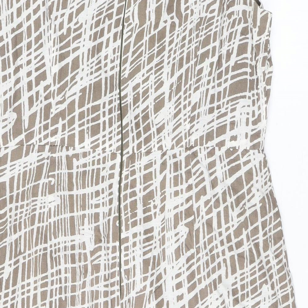 Great Plains London Womens Brown Geometric Linen Pencil Dress Size XL V-Neck Zip