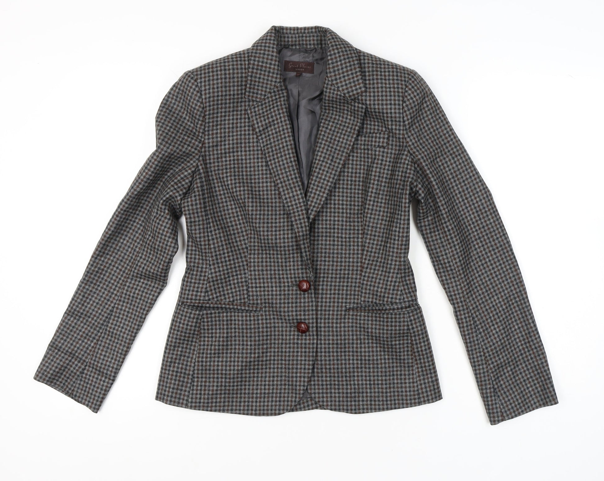 Great Plains Women Grey Wool Check Blazer XS Slim Fit Workwear