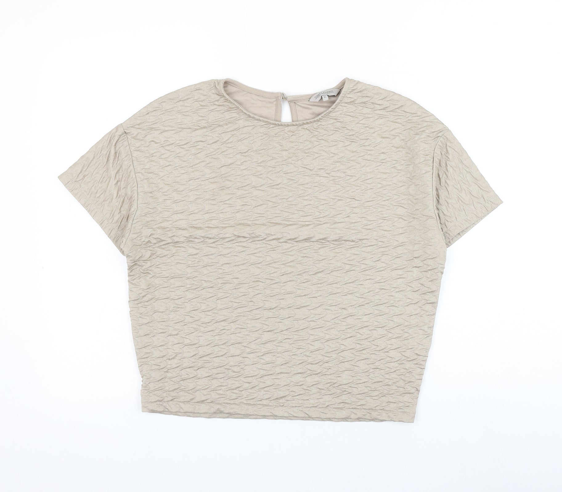 Great Plains Womens Beige Polyester Basic T-Shirt Size XS Round Neck - Textured