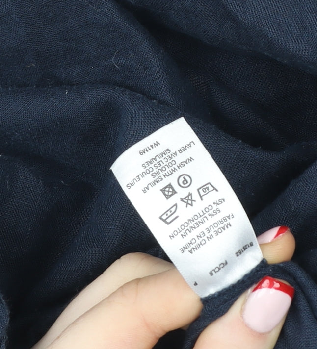 Great Plains Women's Blue Linen Blend Drawstring Relaxed Trousers Size 30