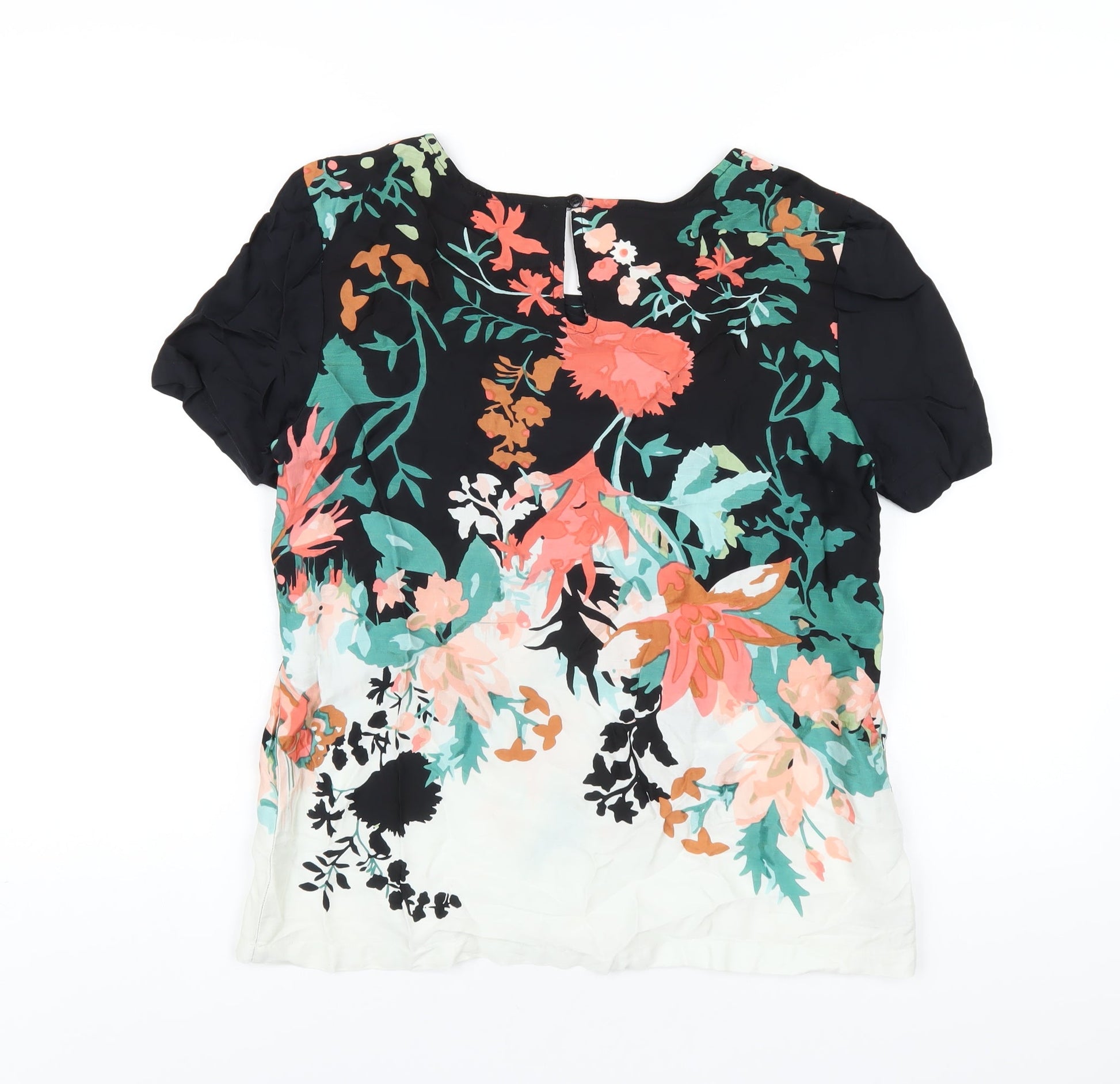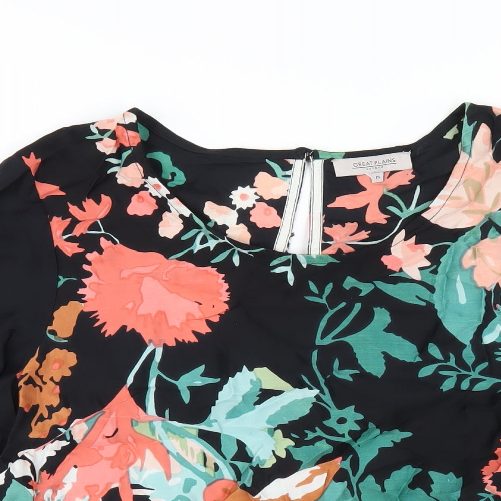 Great Plains Womens Multicoloured Geometric Viscose Basic T-Shirt Size M Round Neck