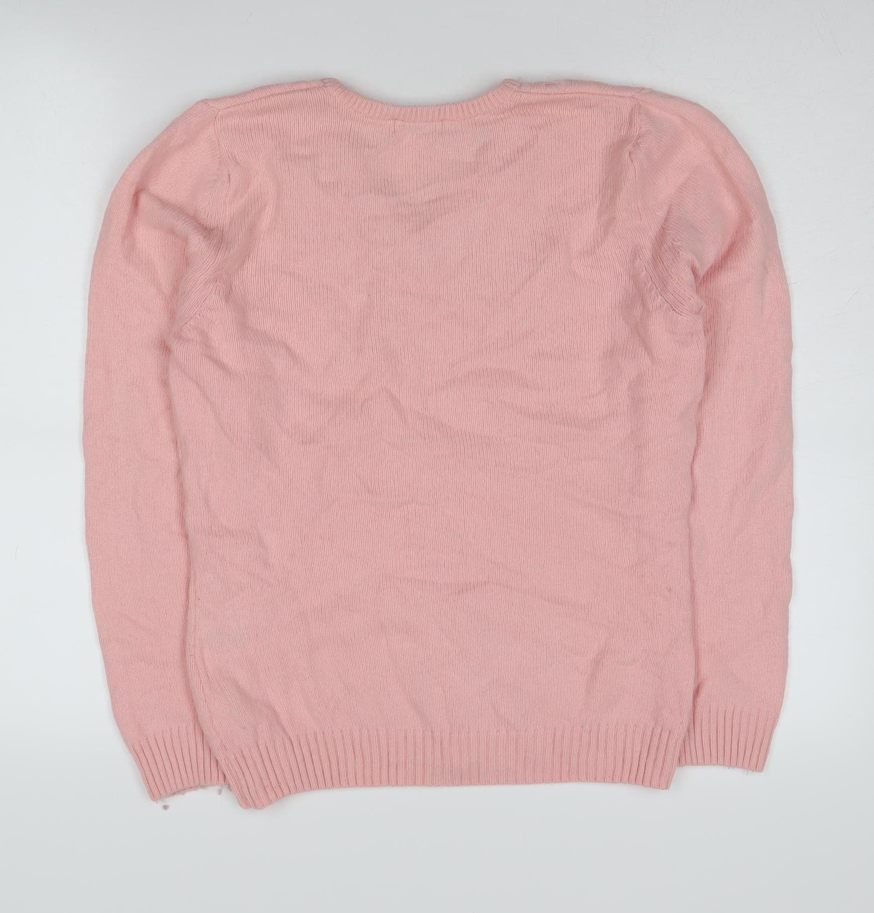 Green Lamb Women's Pink V-Neck Wool Blend Pullover Jumper