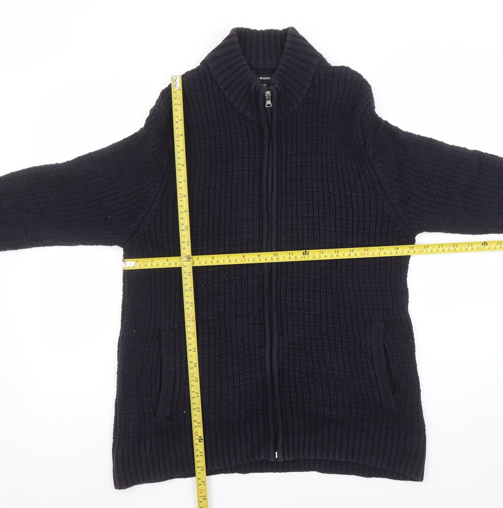 Greenwoods Men’s Blue Full Zip High Neck Knit Jumper M