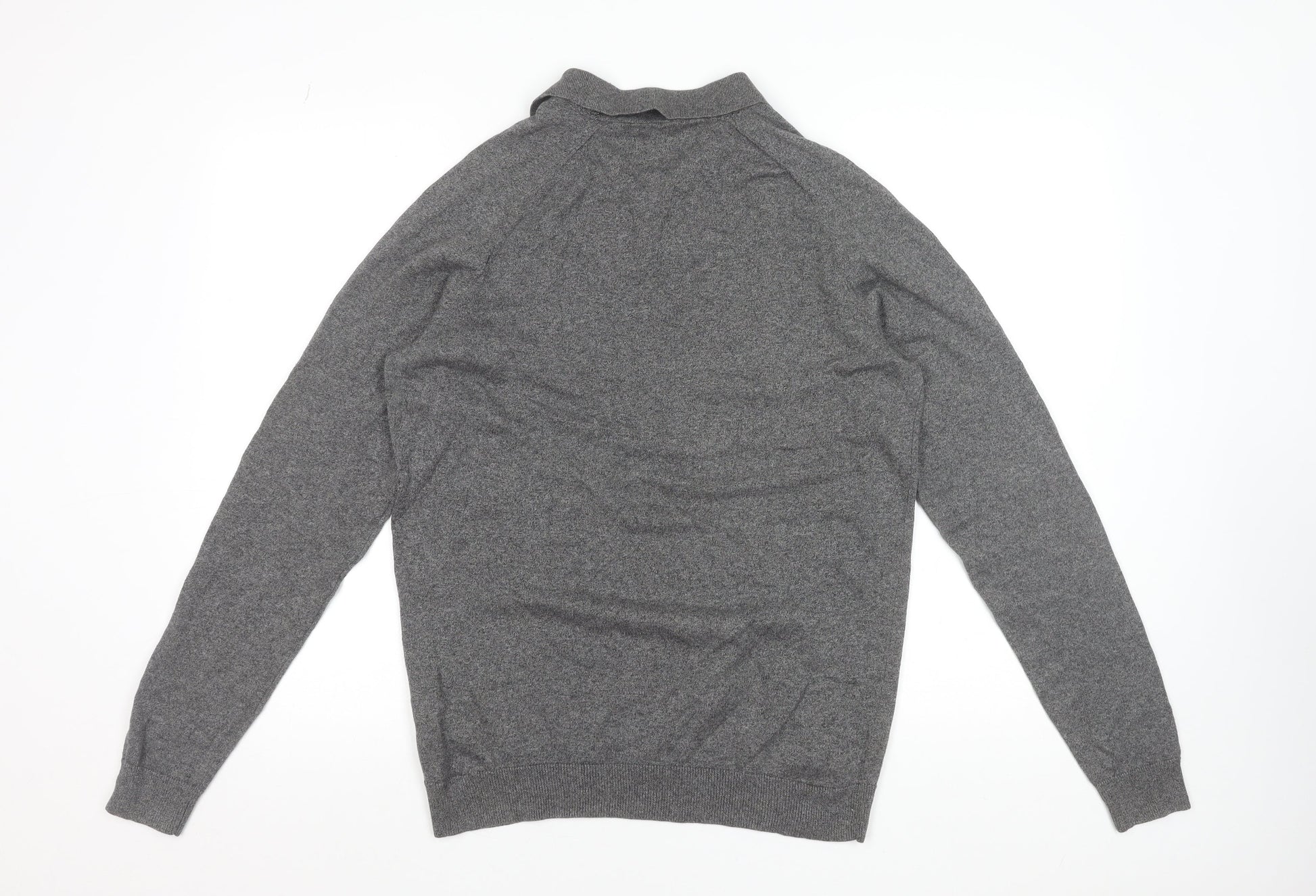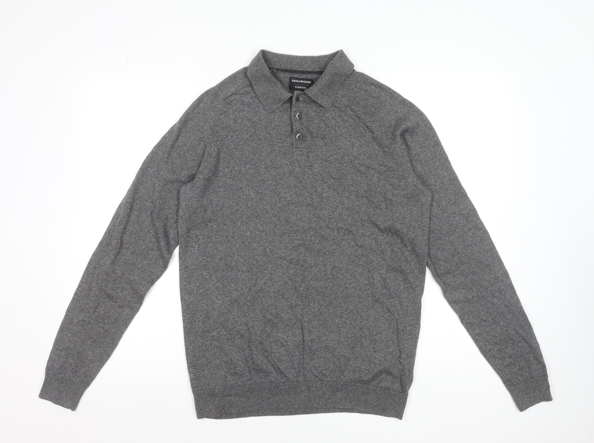 Greenwoods Men’s Grey Cotton Long Sleeve Polo Shirt Size M