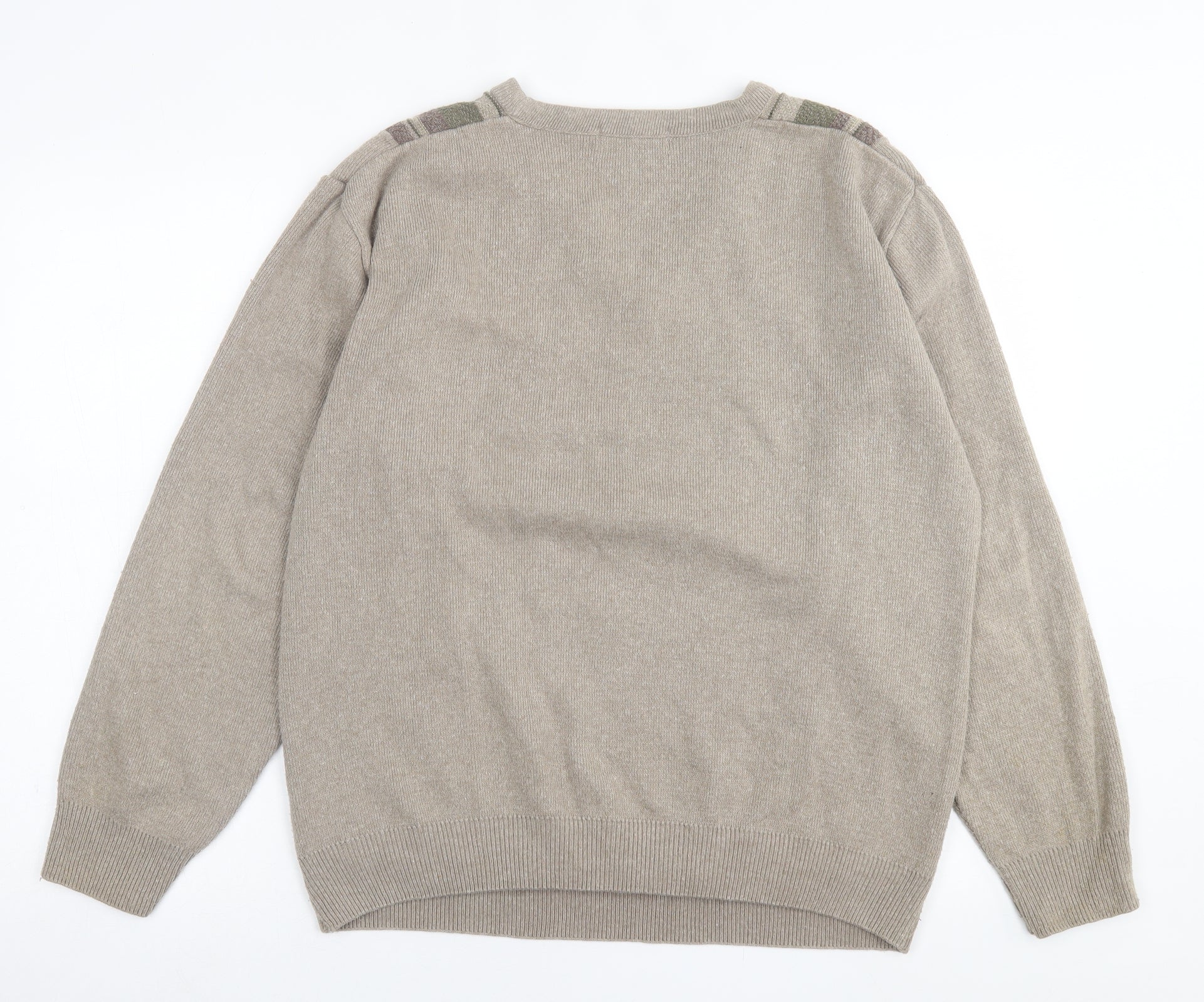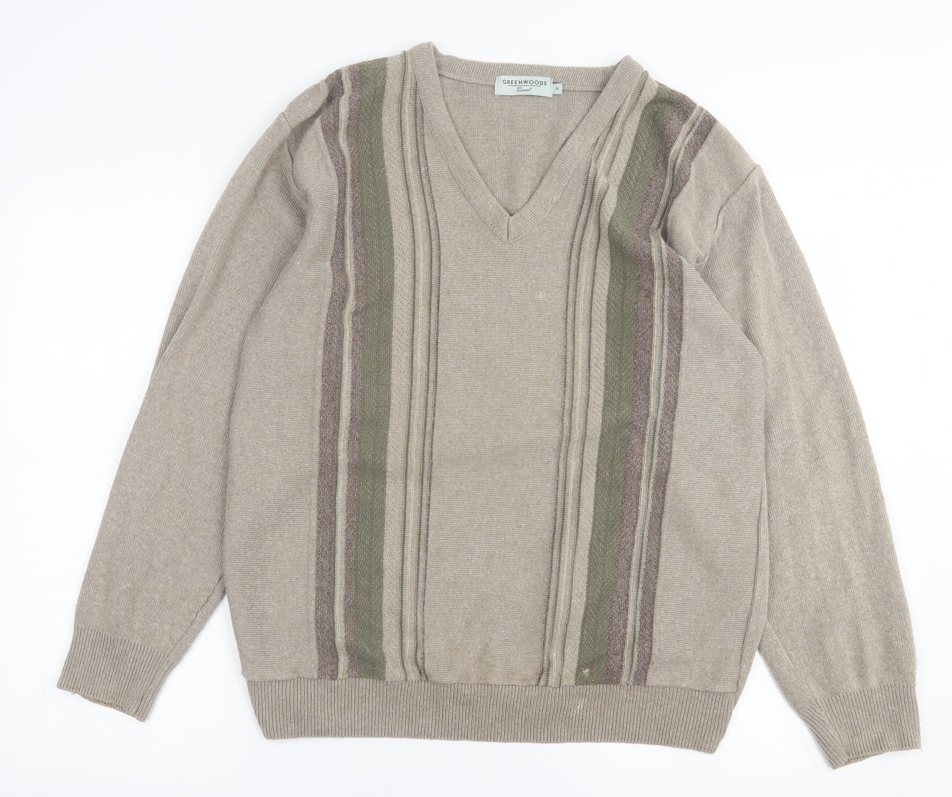 Greenwoods Mens Brown V-Neck Striped Cotton Pullover Jumper Size M