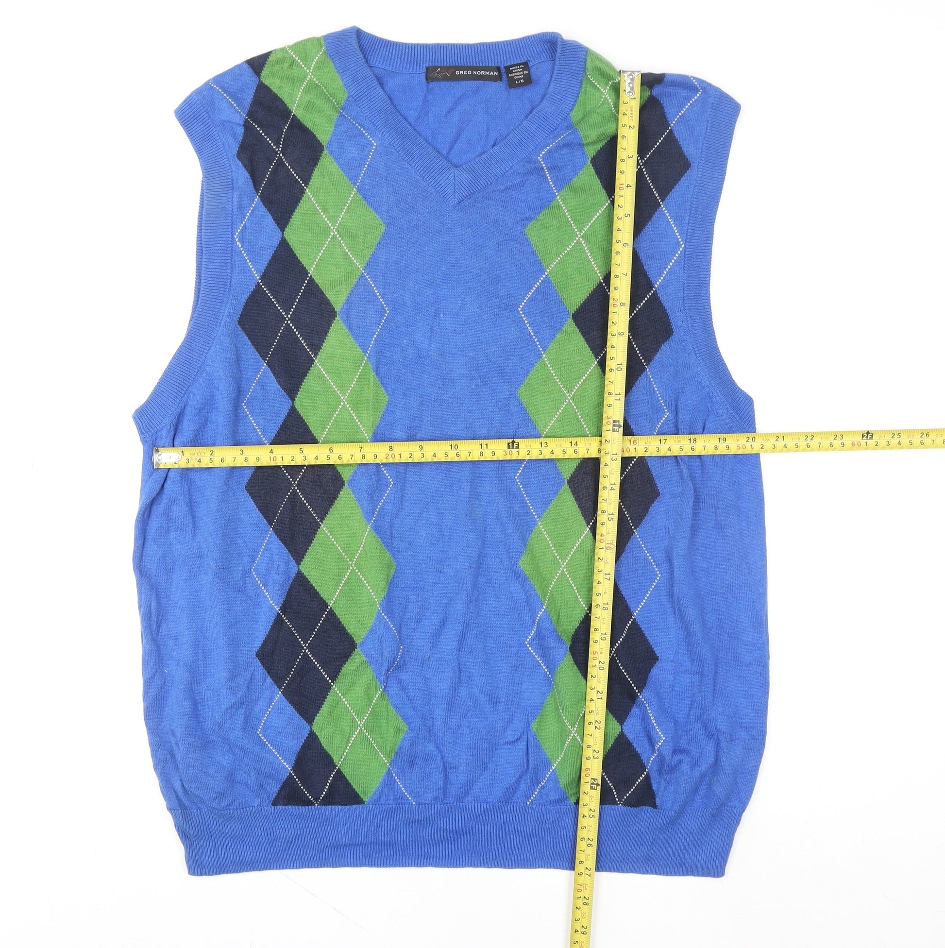 Greg Norman Men's Blue Argyle V-Neck Golf Sleeveless Vest L
