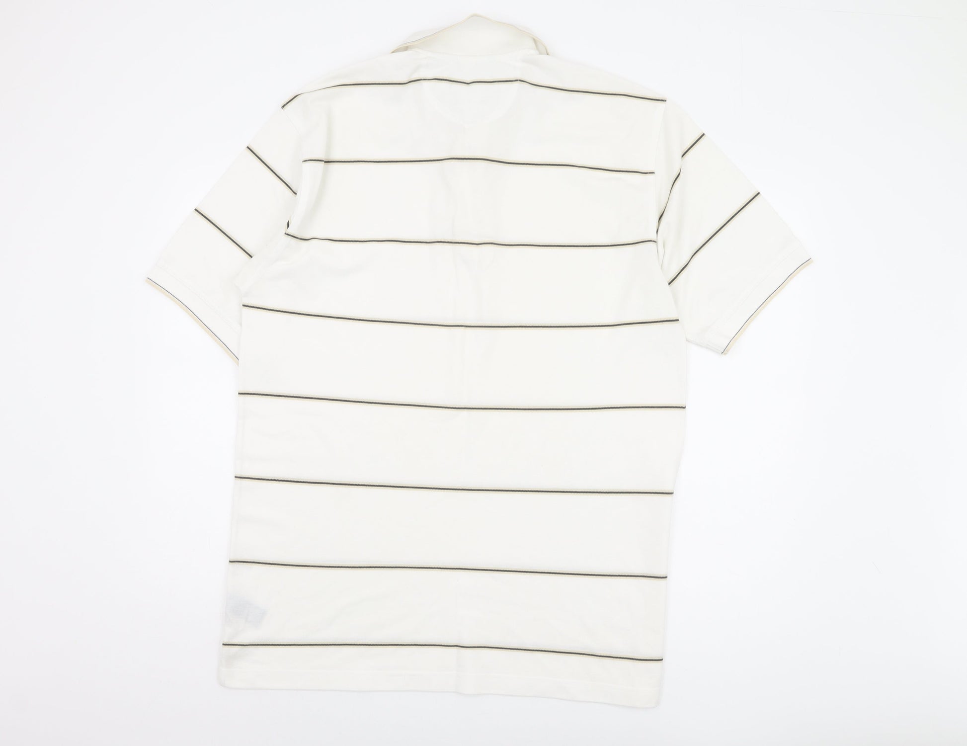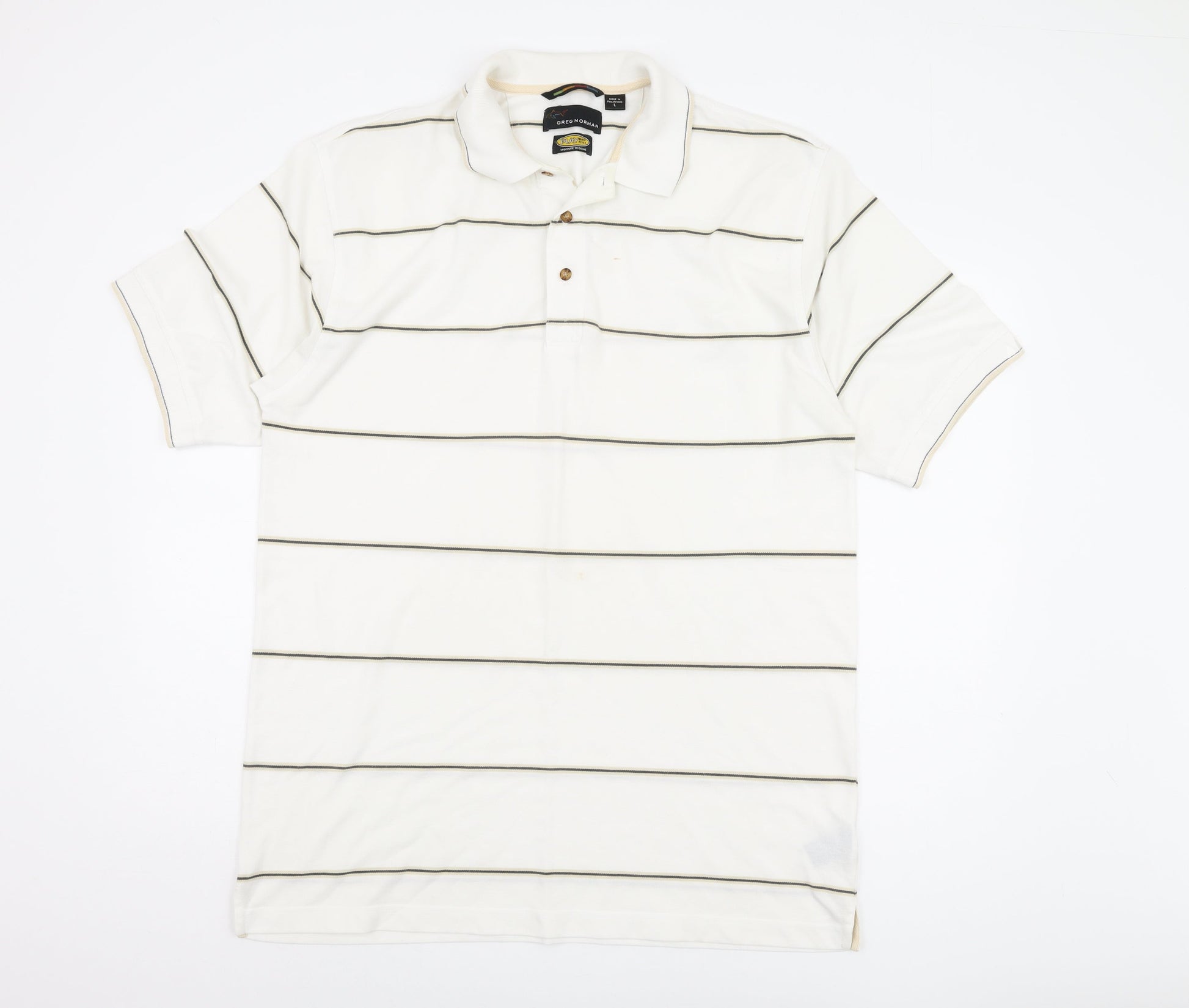 Greg Norman Men's White Striped Polo, Size L, Moisture Wicking
