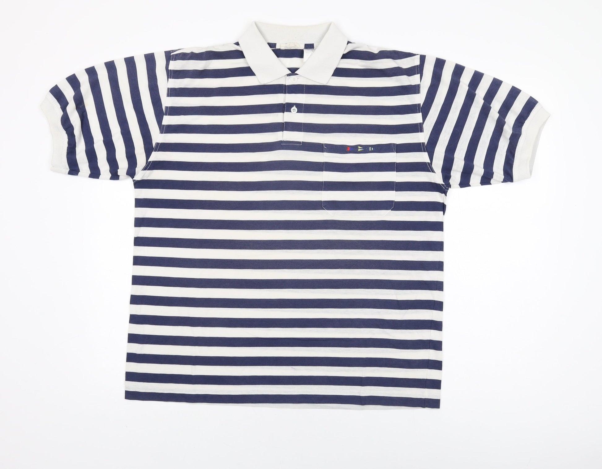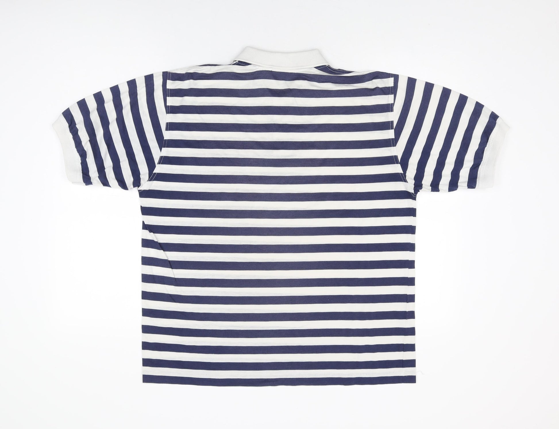 Grenadier Mens White Striped Polyester Polo Size L Collared Button