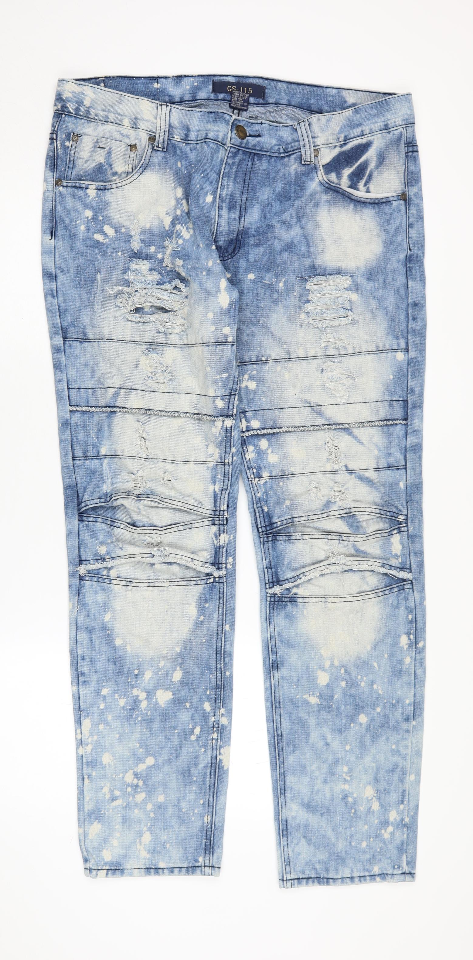 GS-115 Men's Blue Distressed Straight Jeans Size 36