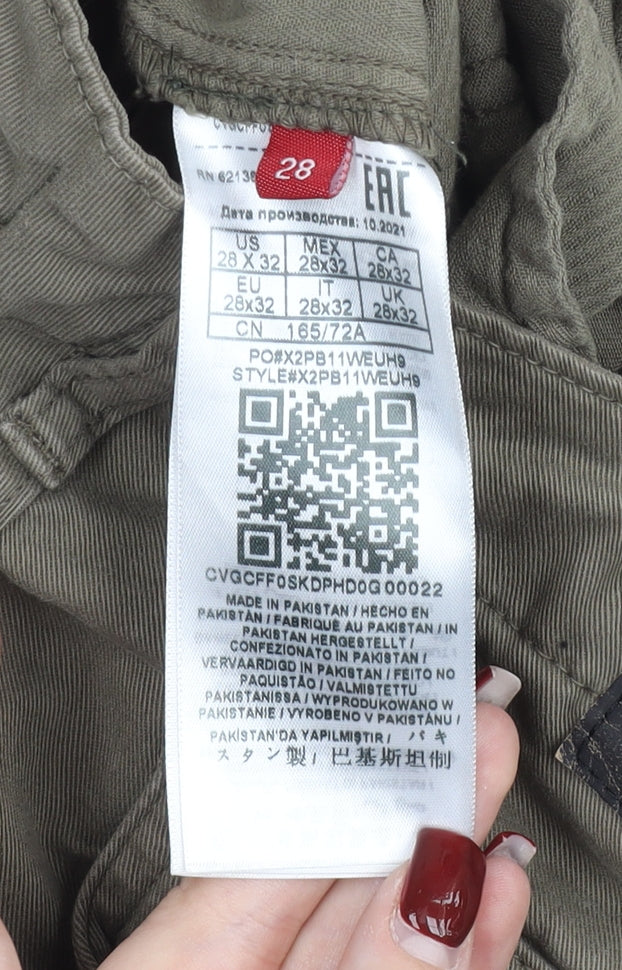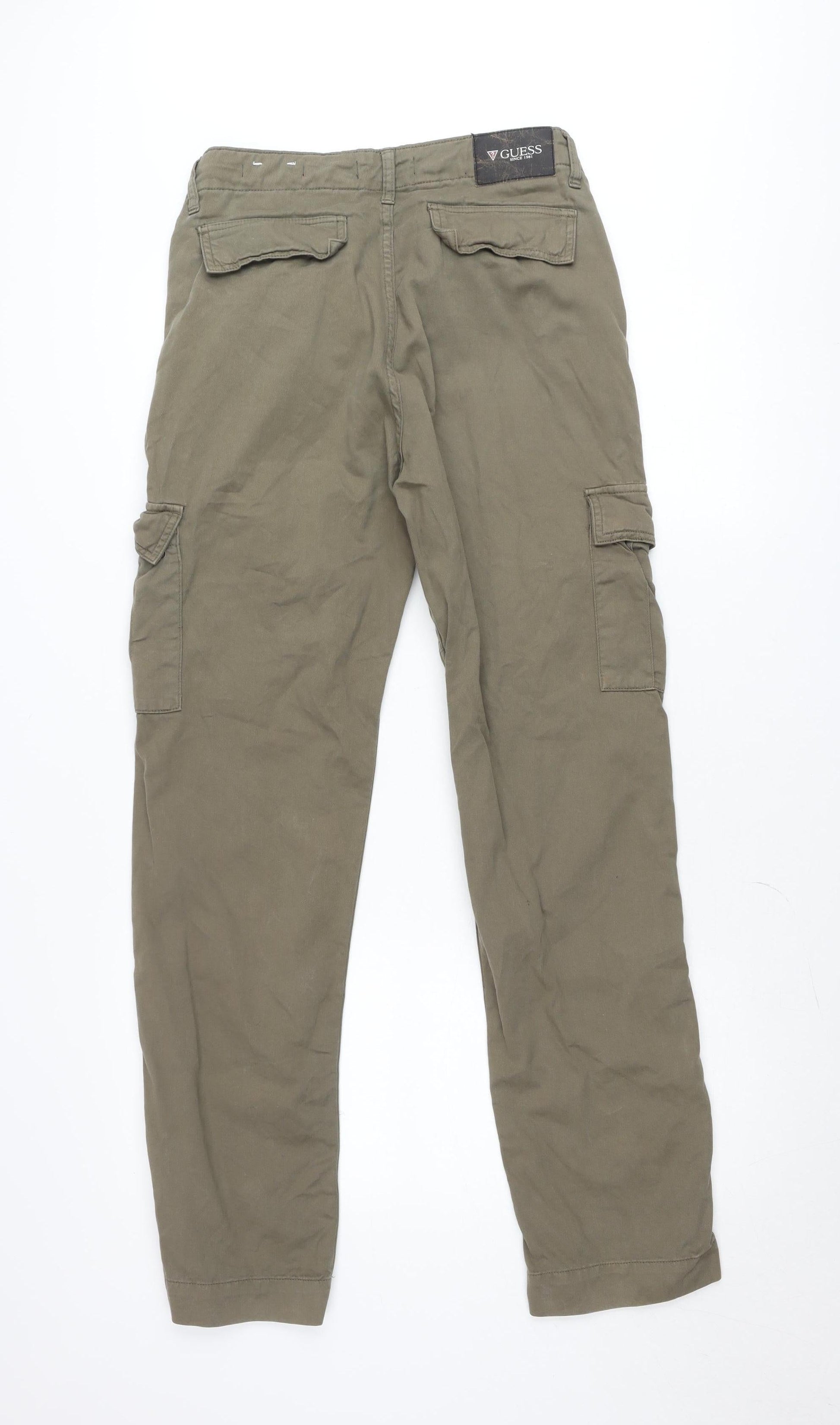 Guess Men’s Green Cargo Trousers Size 28 Regular Cotton Casual