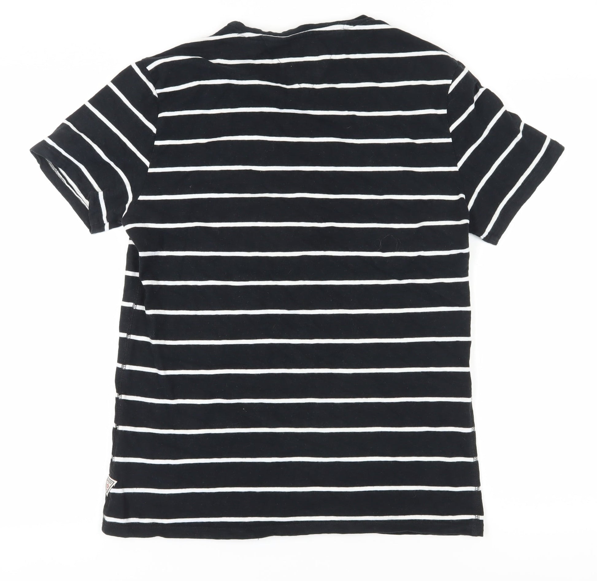 Guess Unisex Black Striped T-Shirt, Size S, Casual Slim Fit