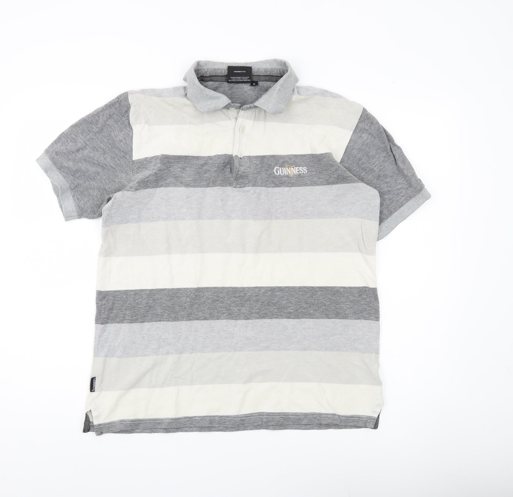 Guinness Men Grey Striped Cotton Polo Shirt Size M Logo Casual
