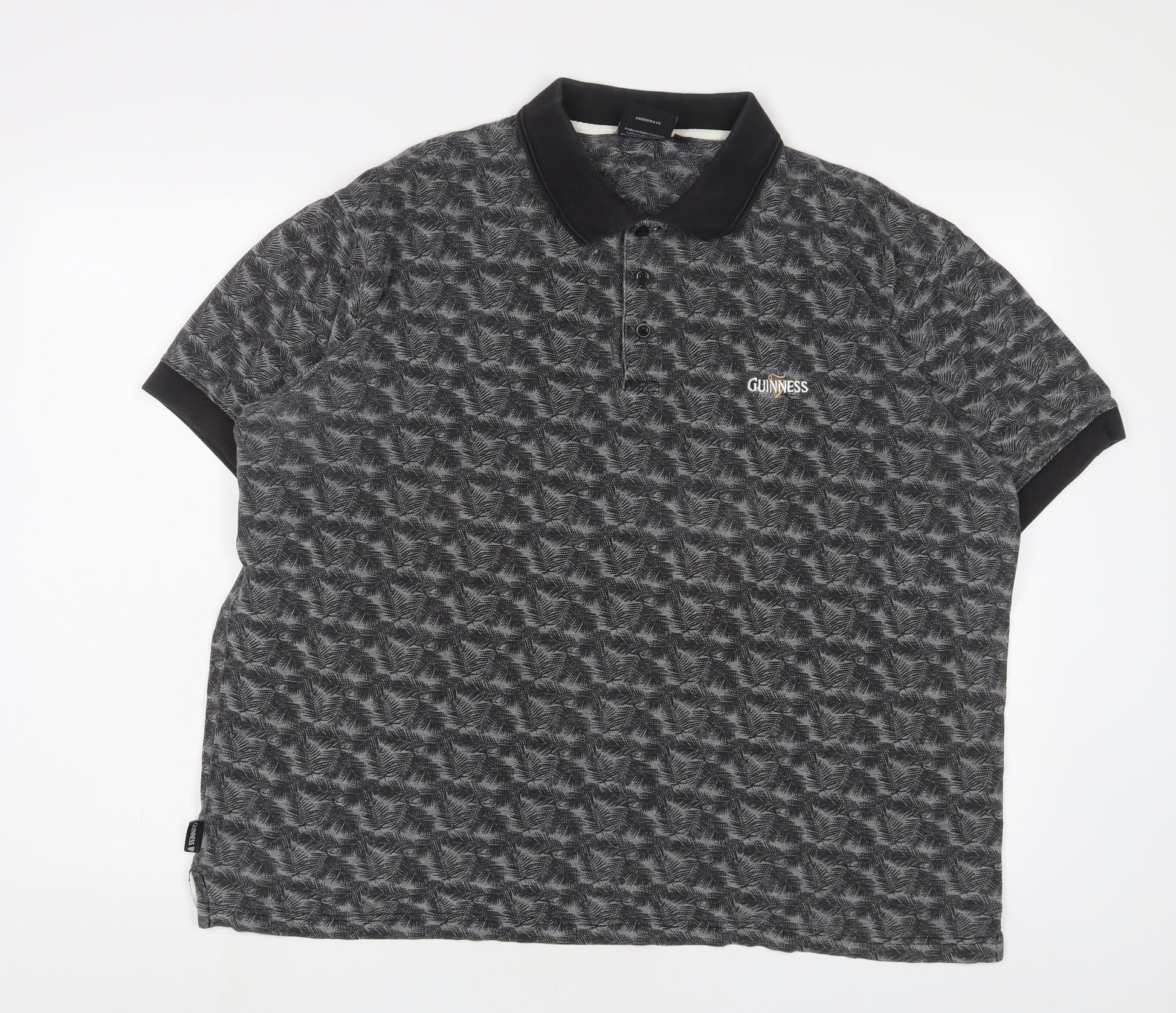 Guinness Mens Grey Geometric Cotton Polo Size XL Collared Button - Logo, Embroidered
