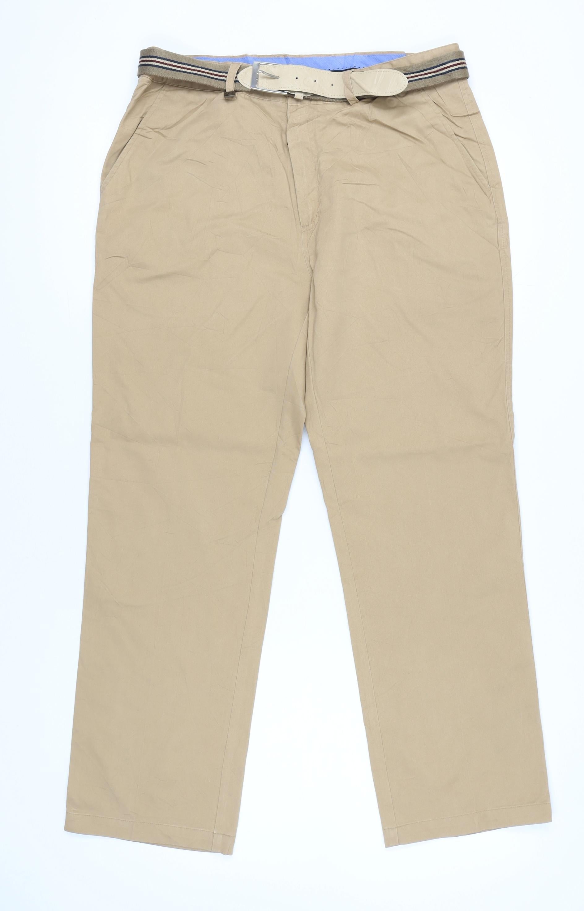 Gurteen Men's Beige Chino Trousers Size 36S Cotton Straight Fit