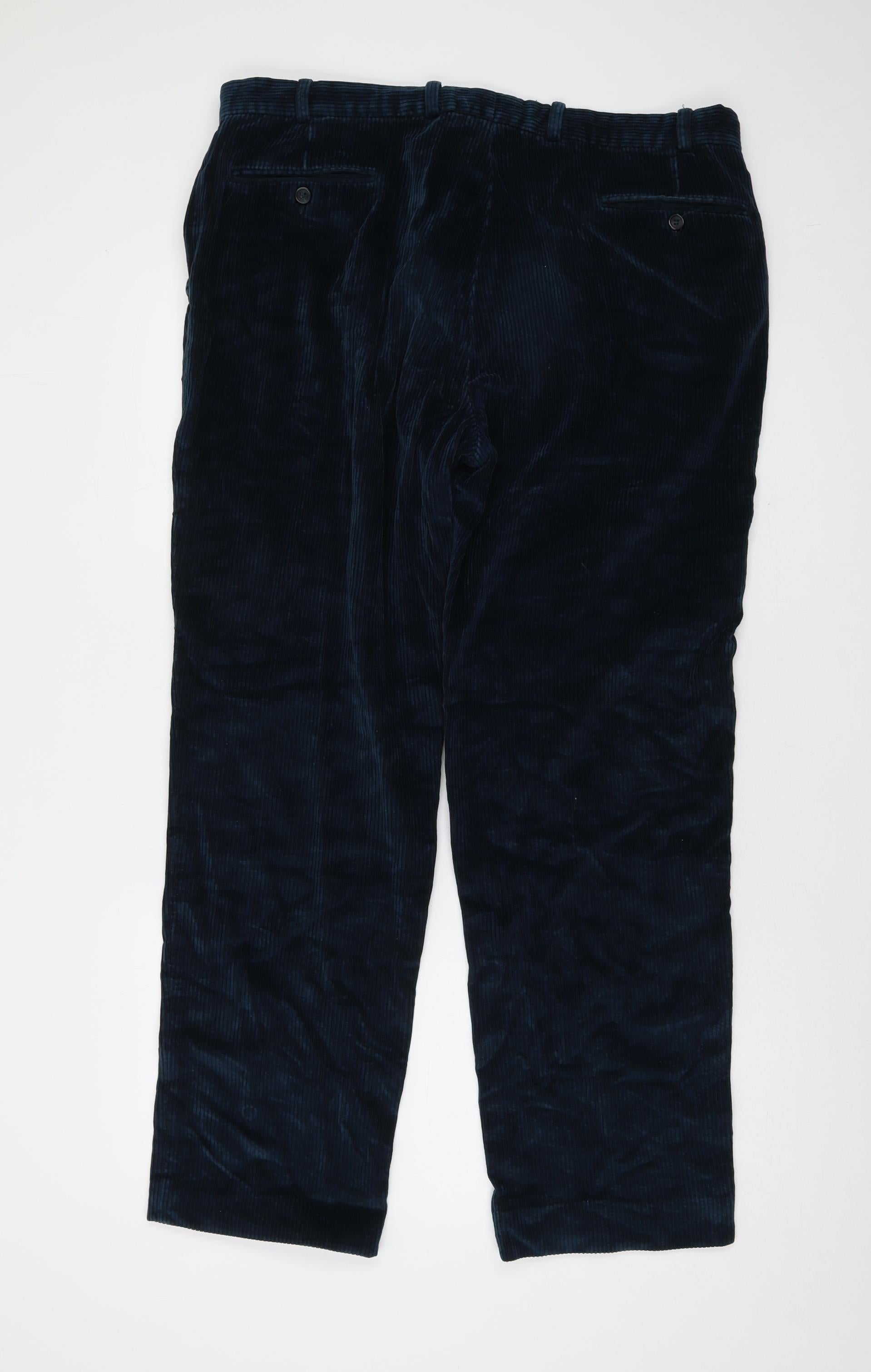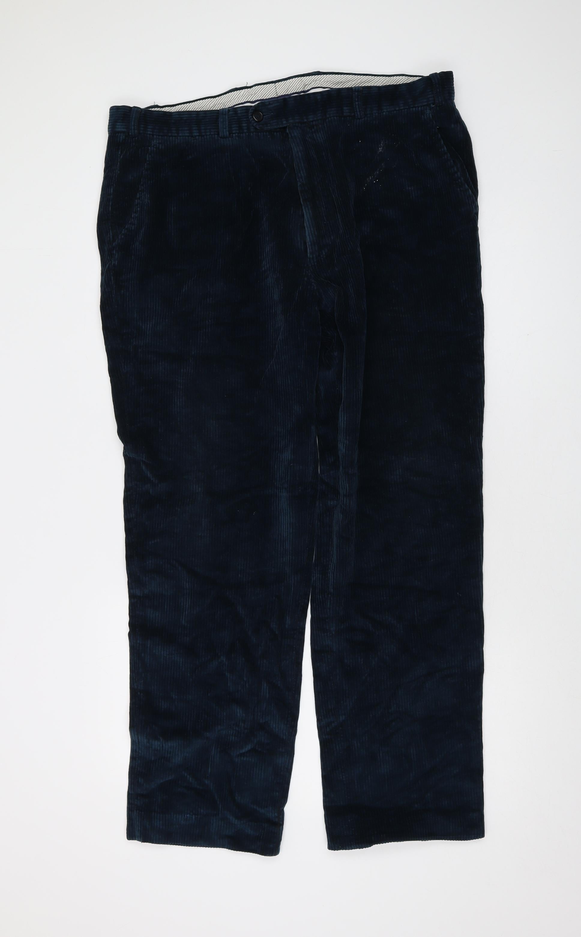 Gurteen Mens Blue Cotton Trousers Size 38 in L30 in Regular Button