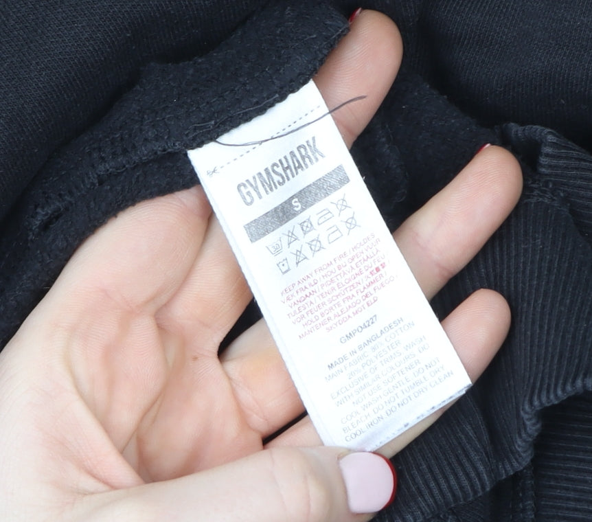 Gymshark Women's Black Pullover Hoodie Size S Cotton Blend Logo Gymwear