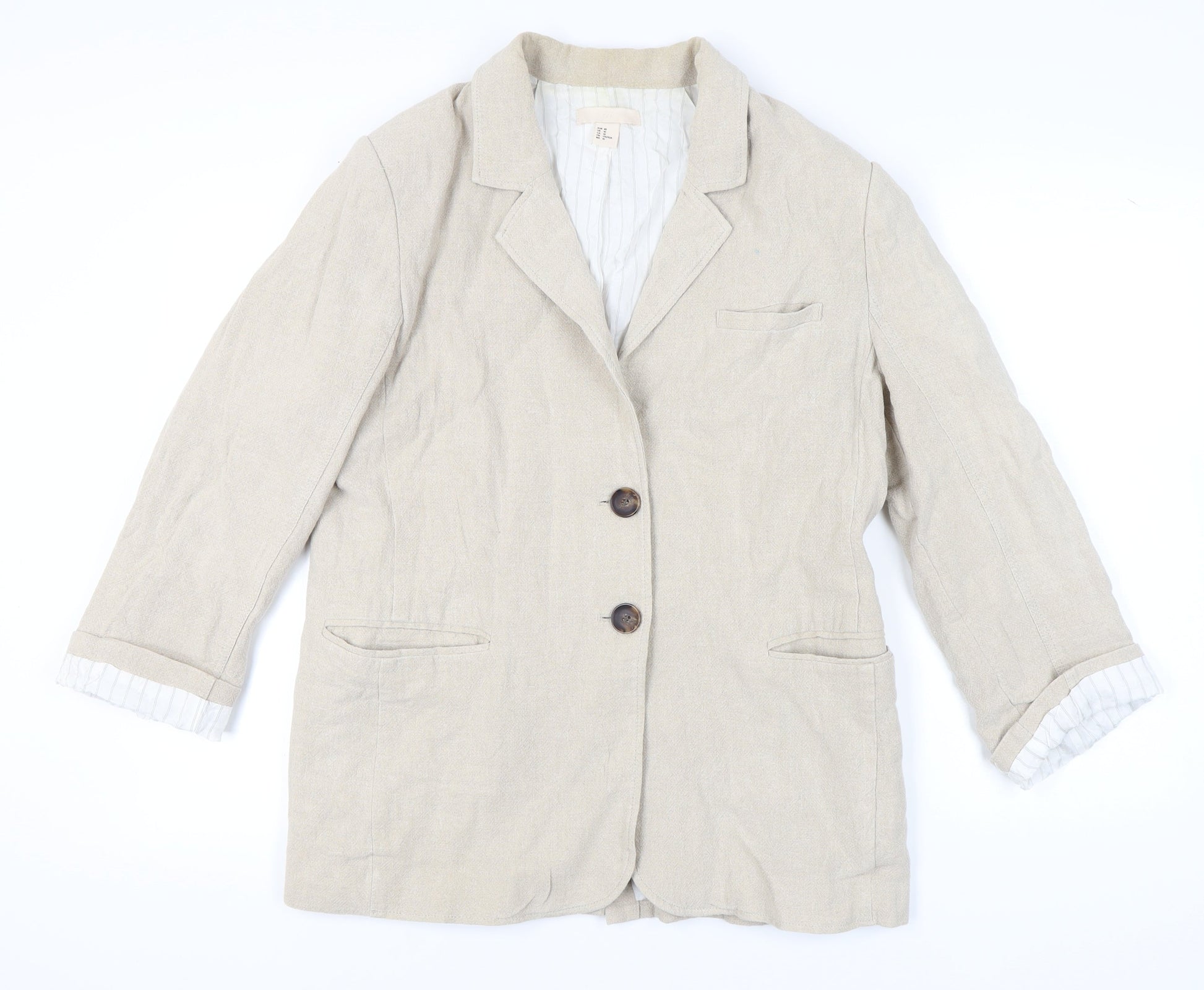 H&M Beige Women's Blazer, Size 12, Linen Blend, Lined