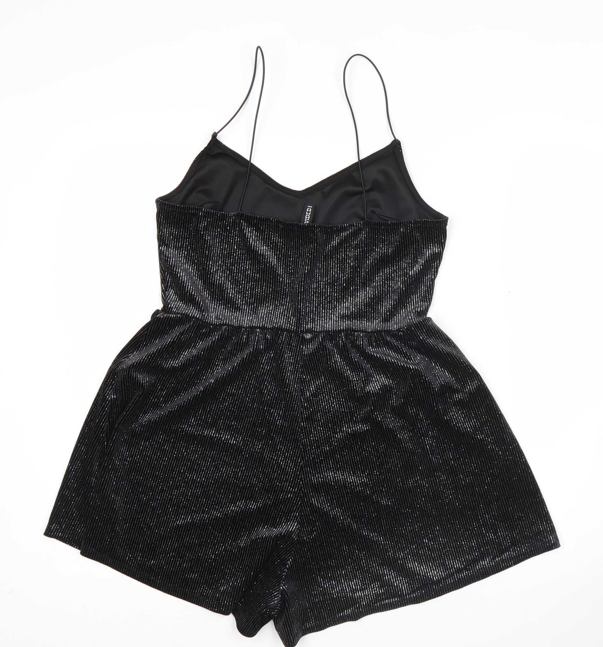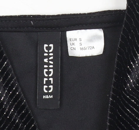 H&M Divided Women Black Shiny Velvet Playsuit Size S Sleeveless V-Neck
