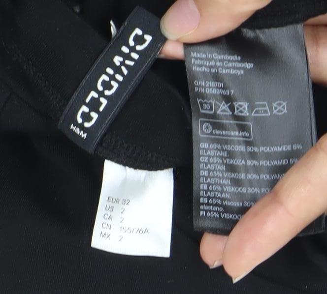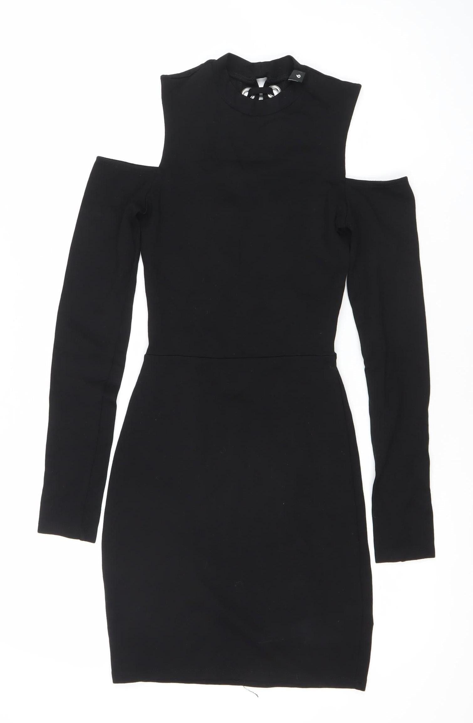H&M Divided Women’s Black Bodycon Mini Dress Size 6 Lace Up Long Sleeve