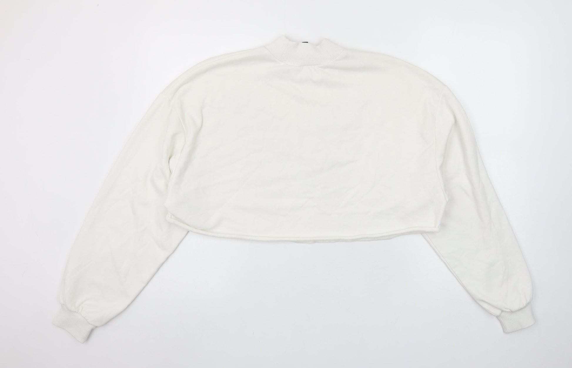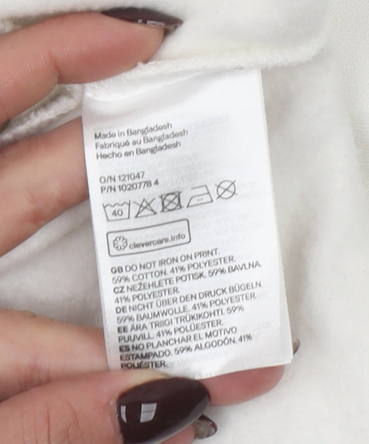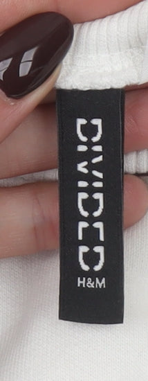H&M Divided Women’s White Cropped Pullover Sweatshirt L Butterfly Karma & Magic
