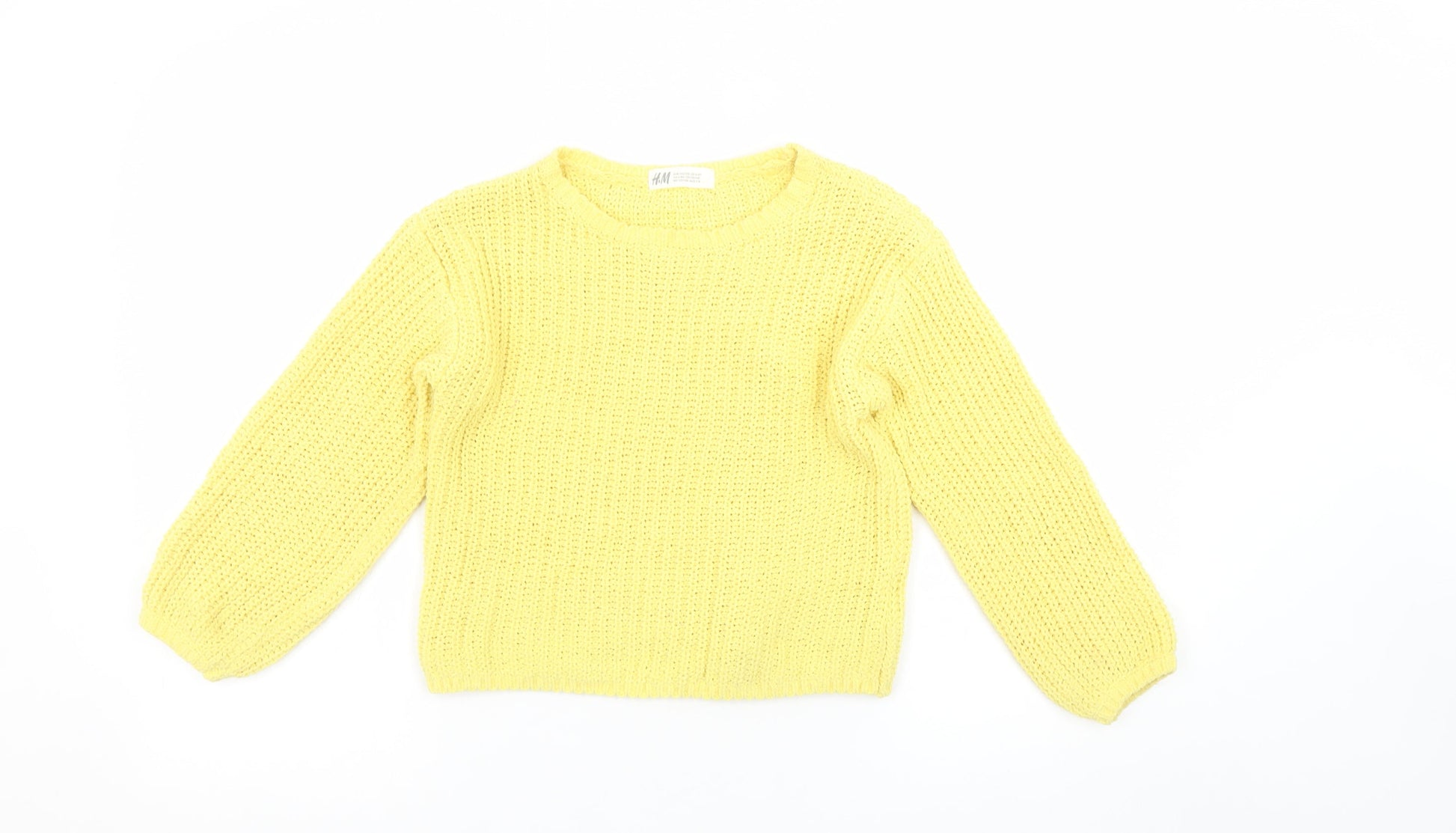 H&M Girls Yellow Knitted Pullover Jumper Size 7-8 Years Polyester