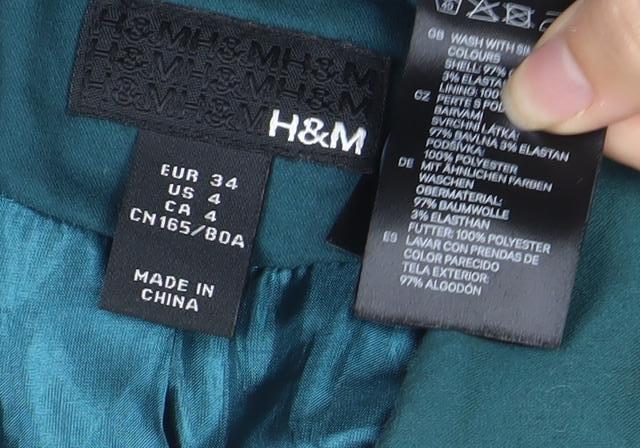 H&M Green Women's Blazer, Size 6, Classic Fit, Lined