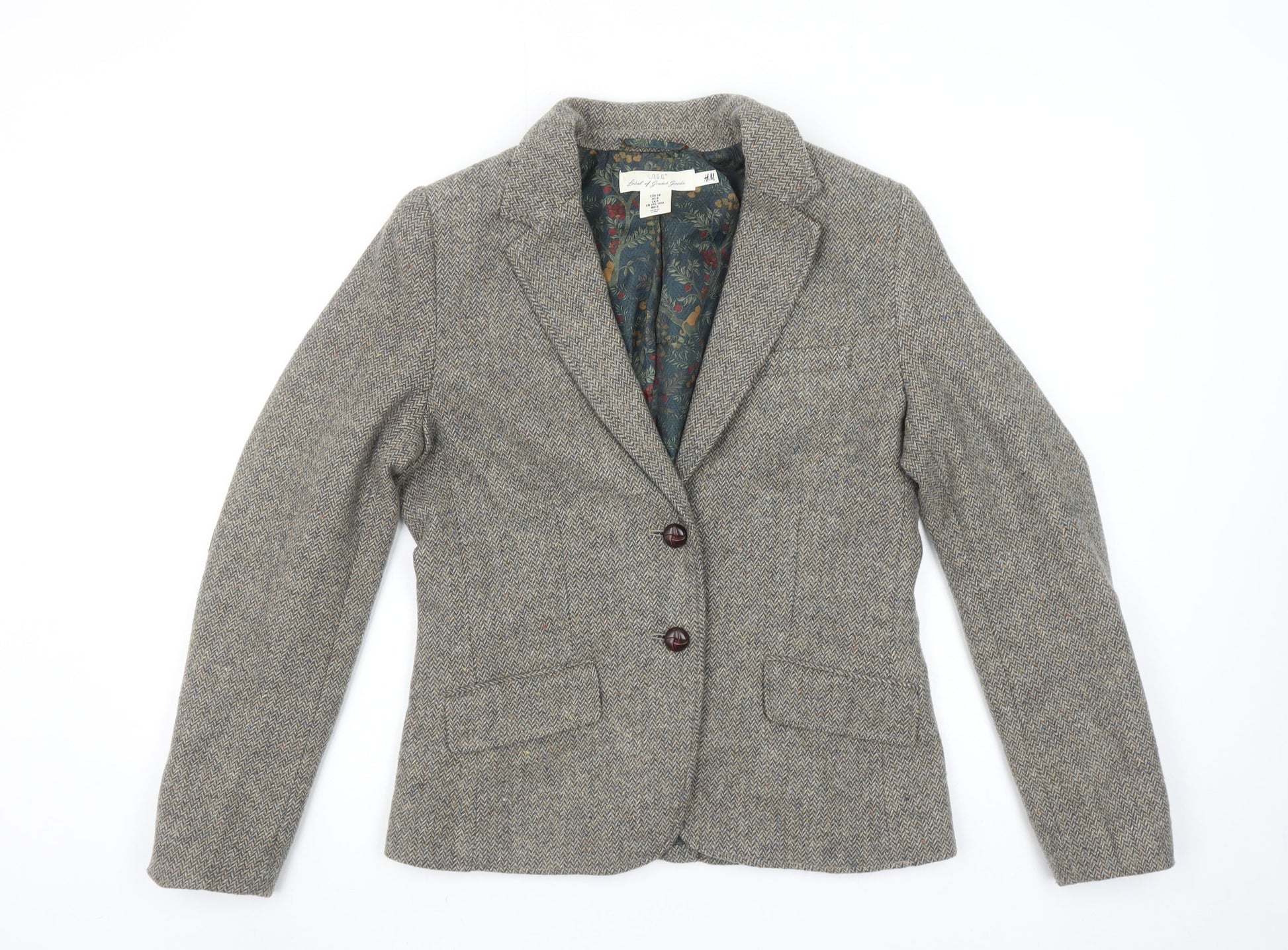 H&M L.O.G.G. Women’s Brown Tweed Wool Blend Blazer Jacket Size 10