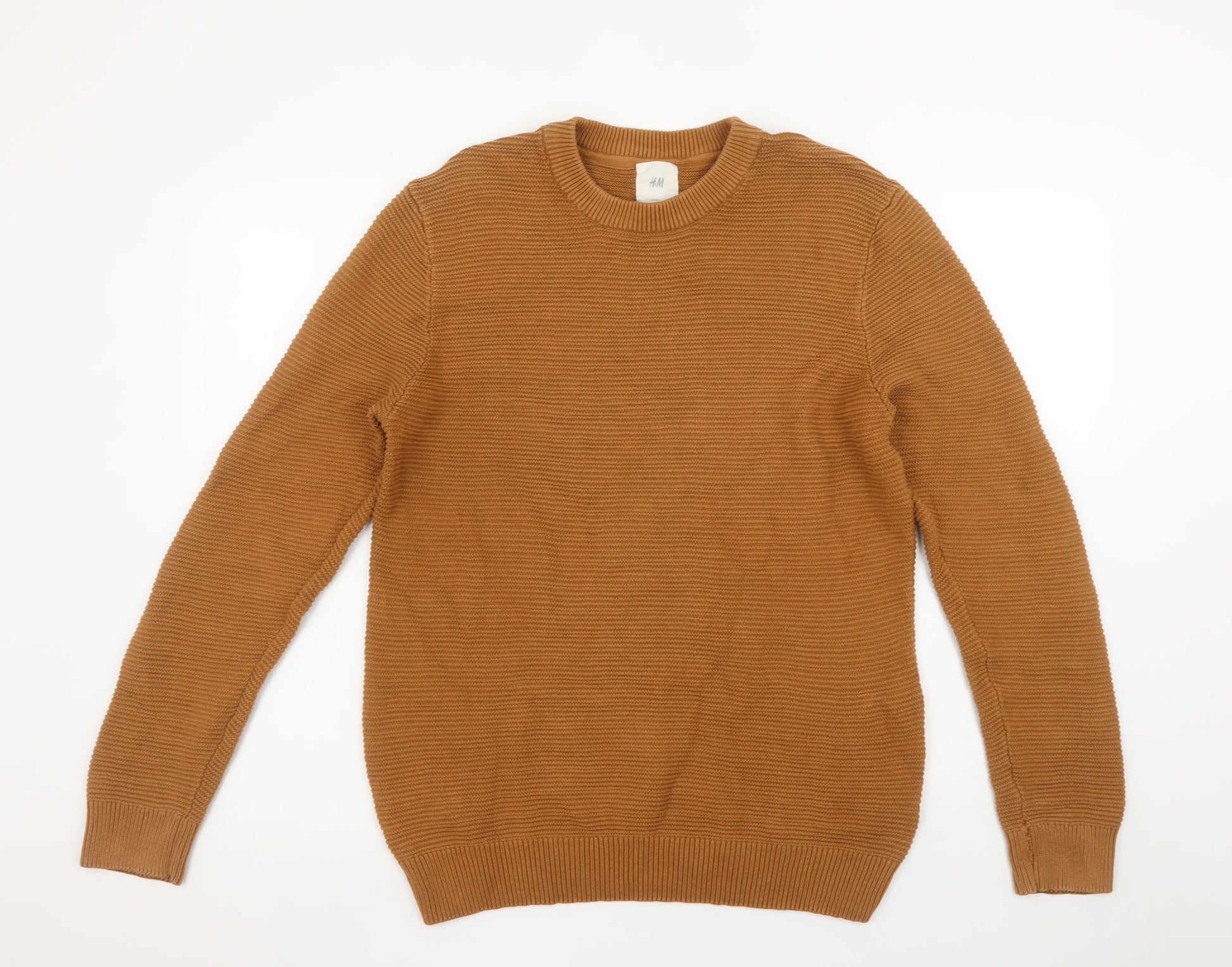 H&M Men Brown Cotton Crew Neck Knit Jumper M