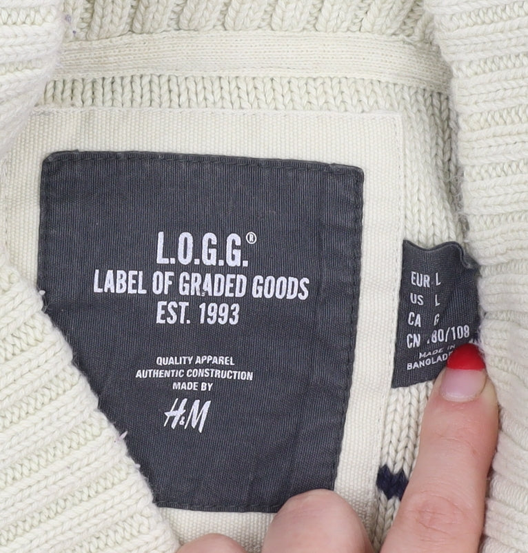 H&M Men’s Beige Roll Neck Striped Pullover - Size L